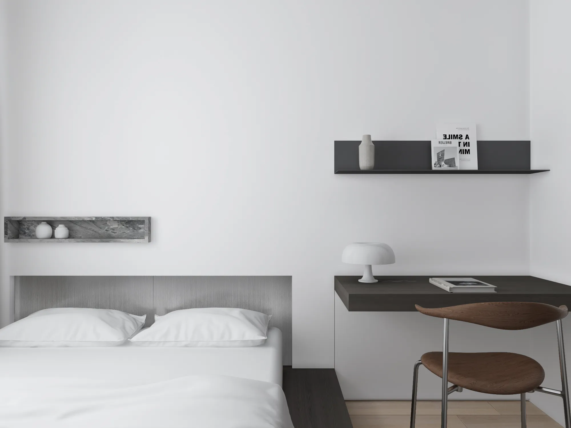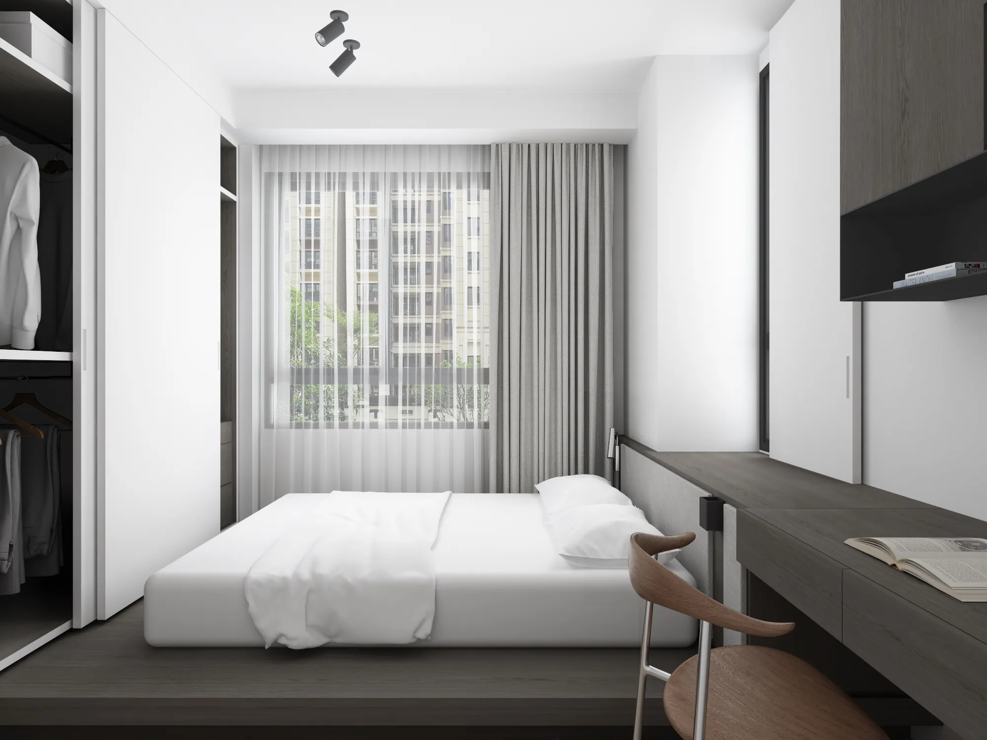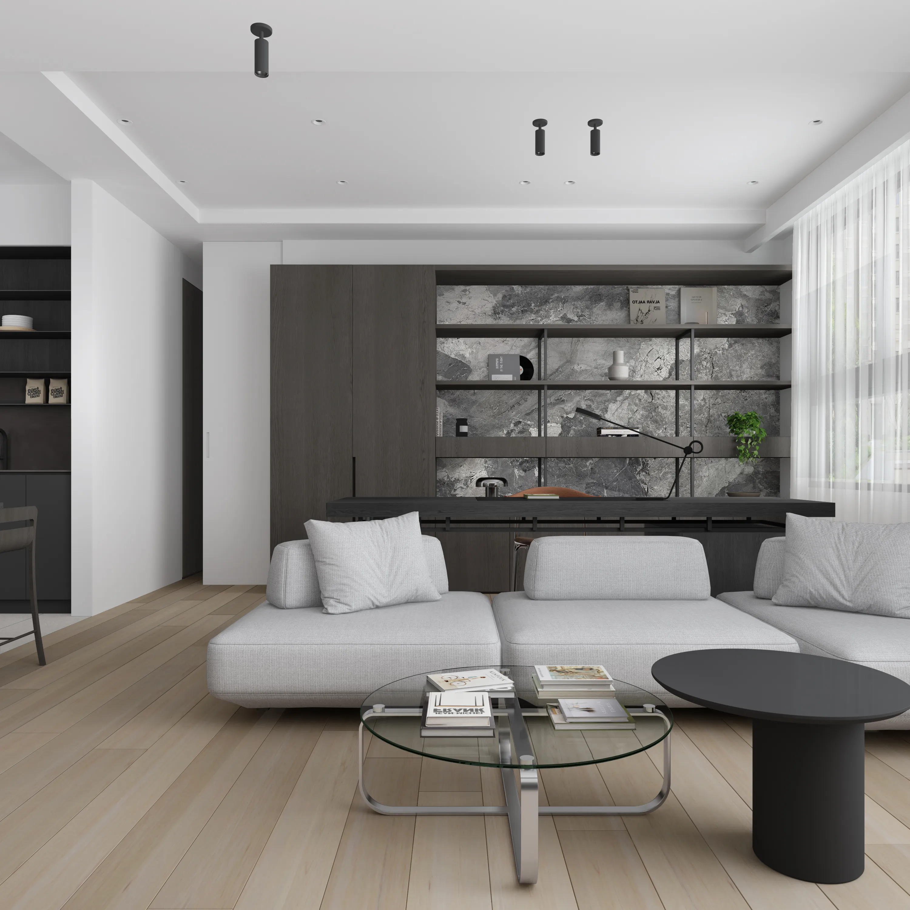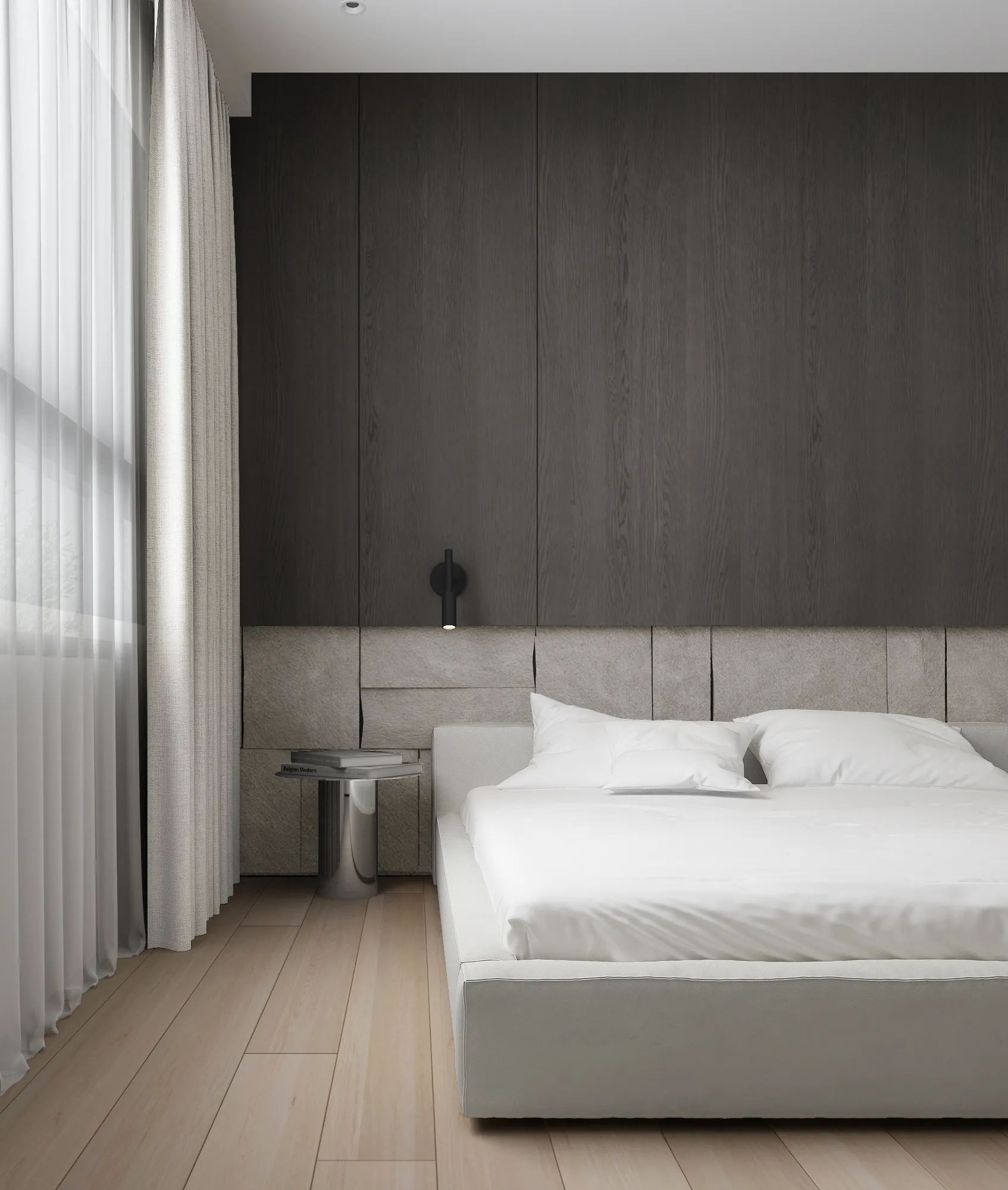 Spaces that truly stand the test of time are not built on accumulation, but on proportion. Dark wood veneer, stone-textured shelving, and restrained white walls are paired with low-saturation furnishings and clean, precise lines. Together, they quiet the space, allowing the quality of everyday living to naturally come forward. What we value has always gone beyond how a space looks. It’s about whether one can genuinely feel at ease, grounded, and still find comfort in it after living there for years. From the proportions of cabinetry and the junctions between materials, to the relationships between the desk, sofa, display shelving, and circulation—every seemingly simple composition is the result of continuous refinement. Design is not about filling a space,but about ensuring that every part of it feels just right.