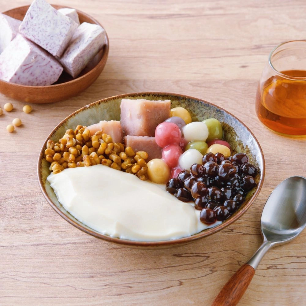 炒糖豆花加購好料:綠豆、芋頭、好運湯圓、珍珠