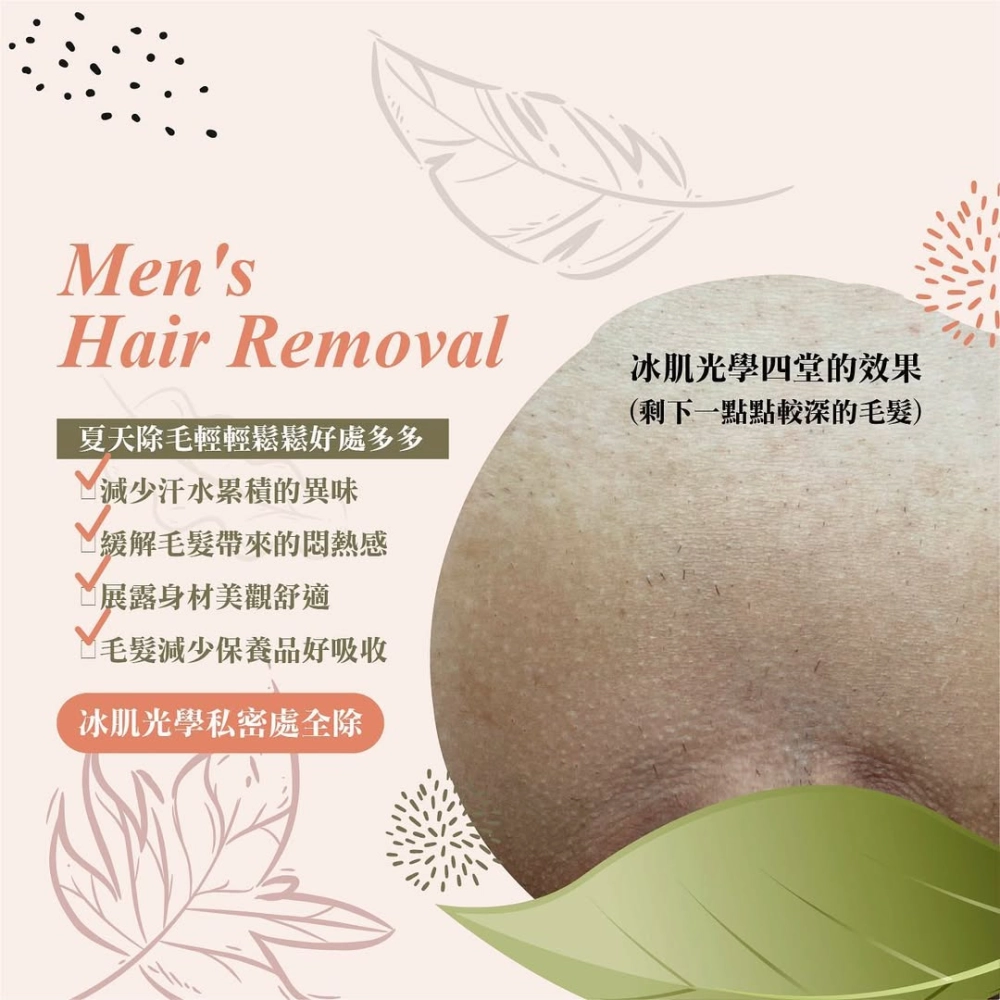 • 日式光學除毛  循序漸進改善毛髮量,依個人體質做到一定次數可達「半永久性除毛」。