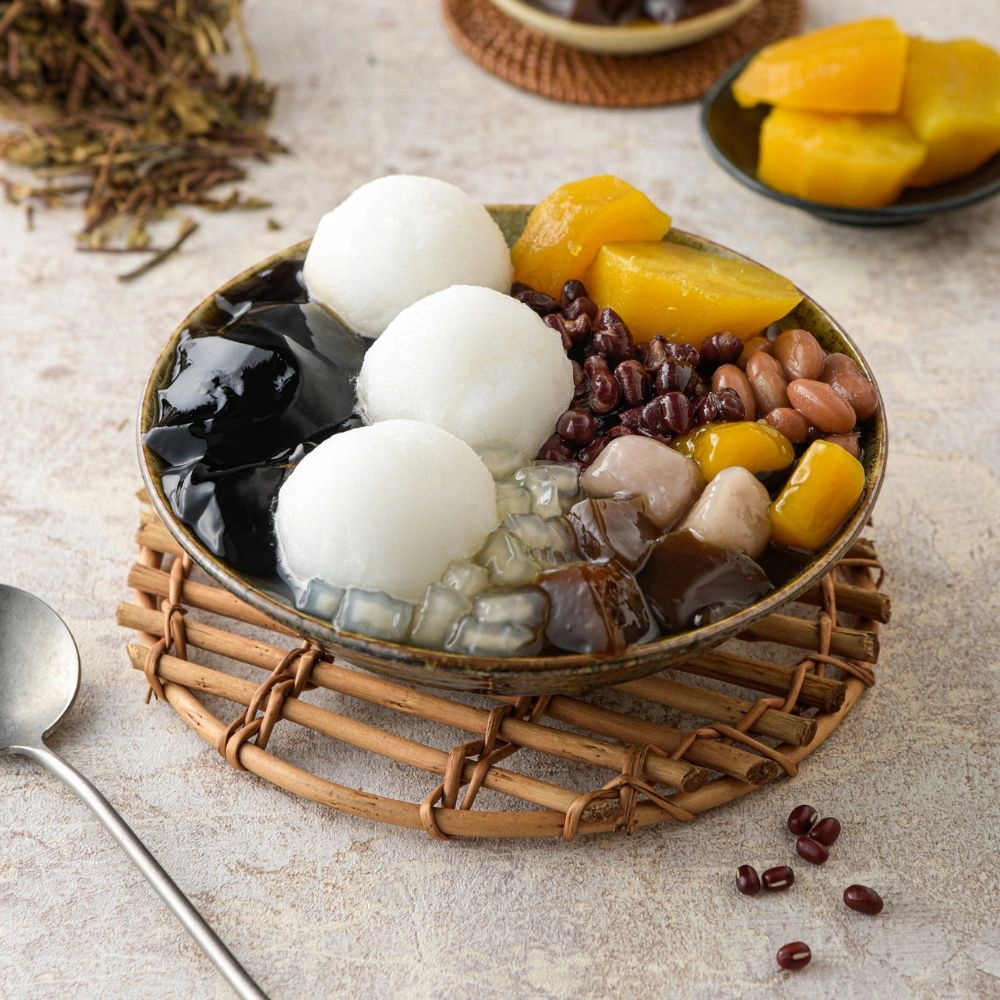 無添加鹼粉、色素、防腐劑,天然仙草熬煮,口感滑嫩清爽,再加上香蕉清冰,搭配喜歡的配料是夏日的最佳甜品。