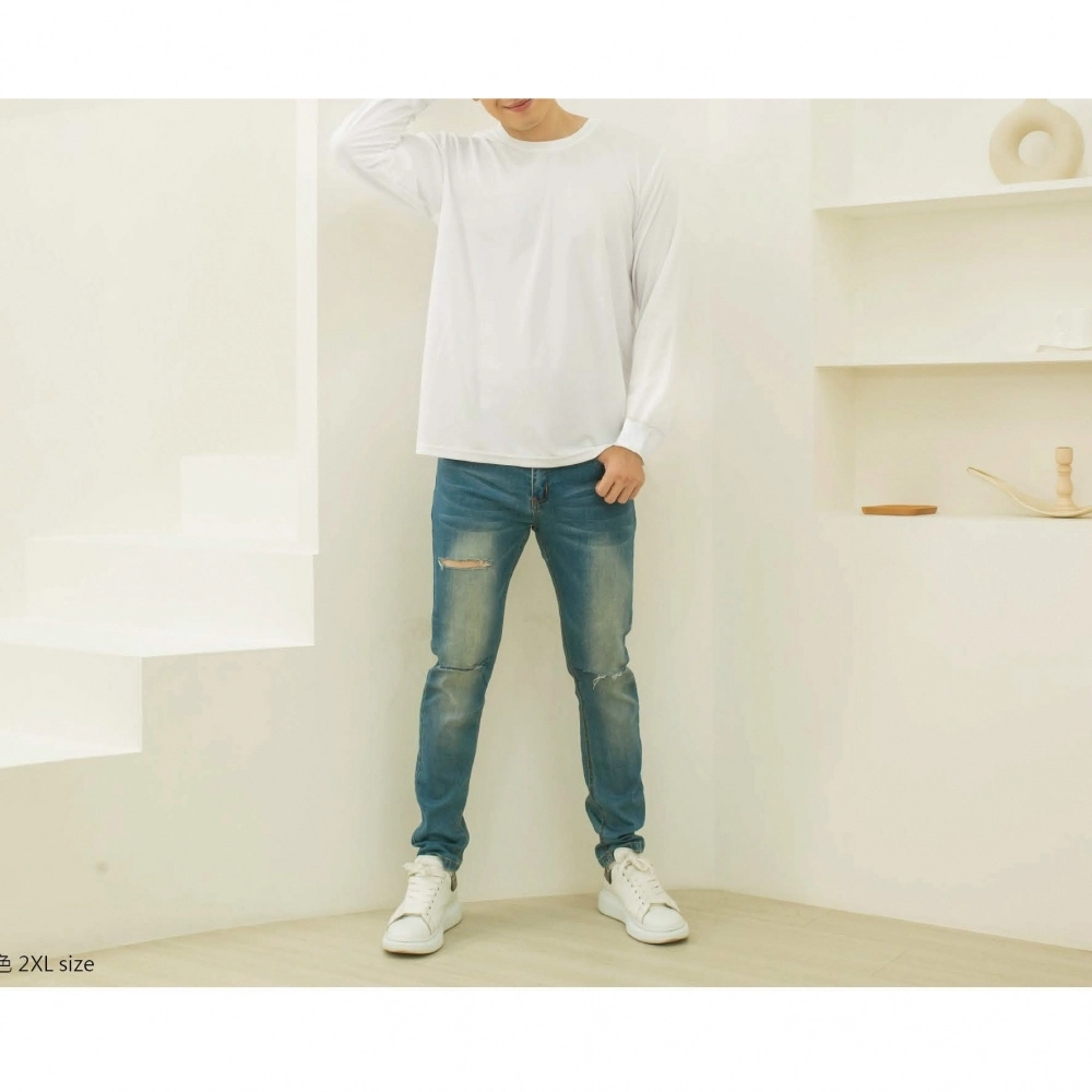 商品南紡吸濕排汗長袖素面圓領T恤