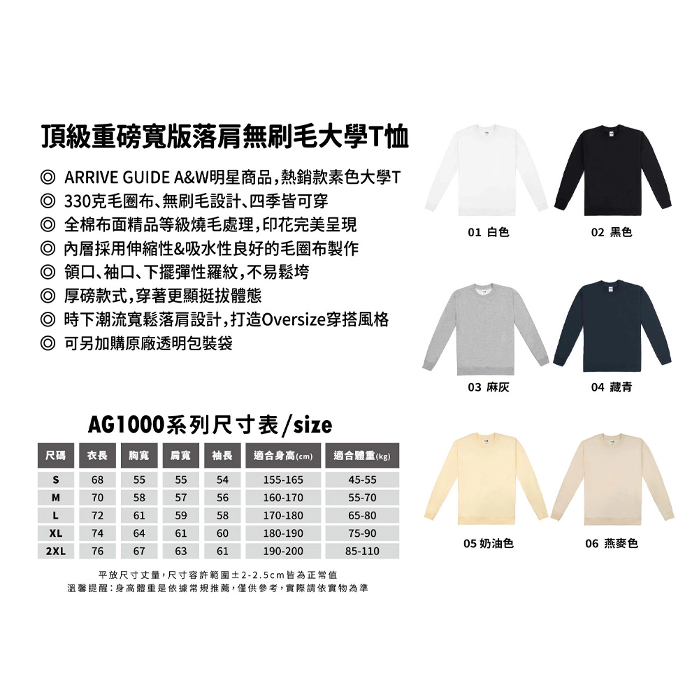 ●ARRIVE GUIDE A&W明星商品,熱銷款素色大學T
