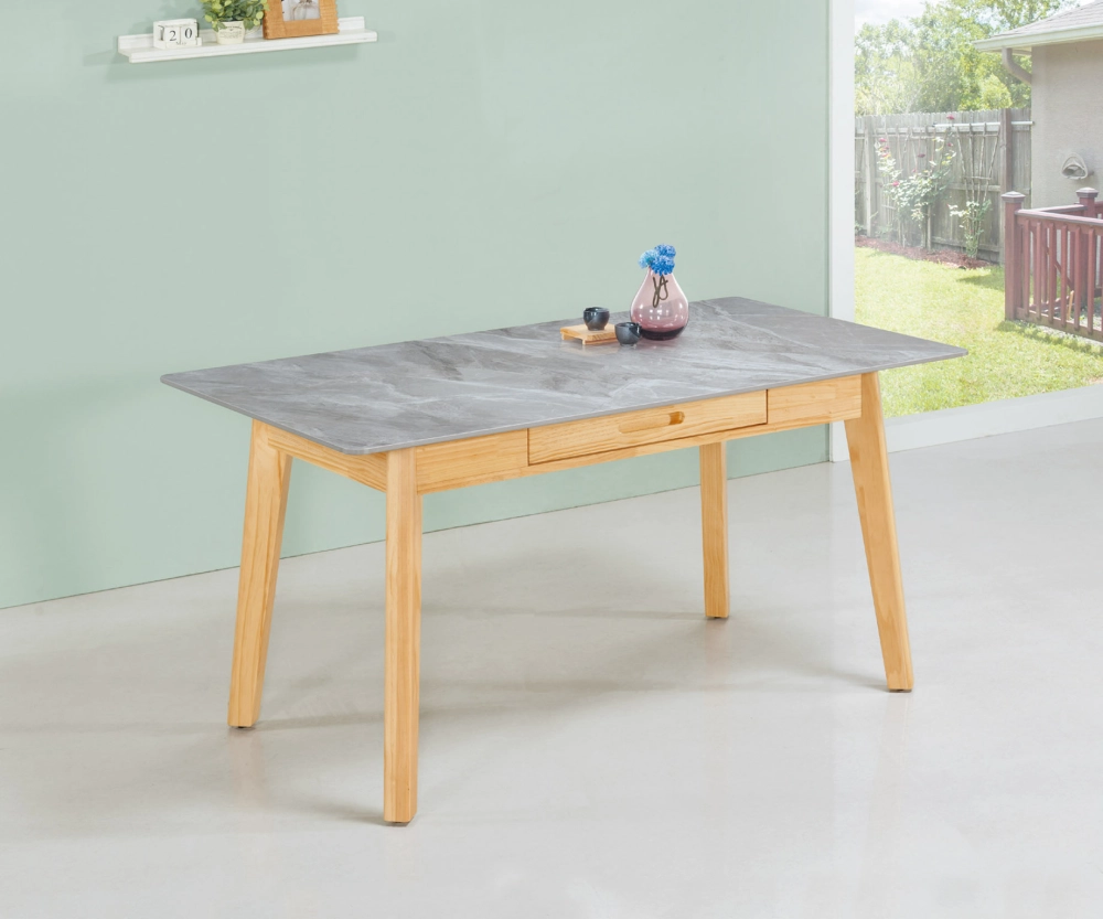 • 原木色松木岩板餐桌