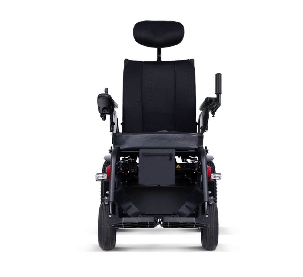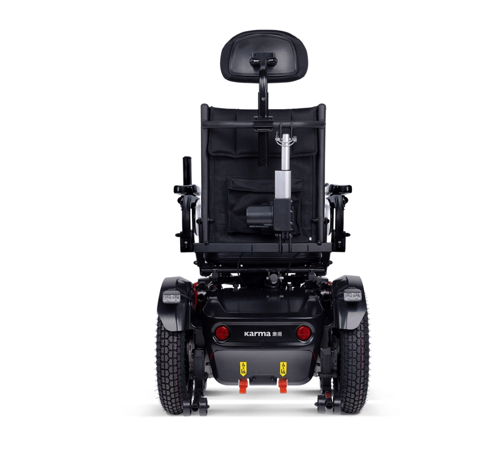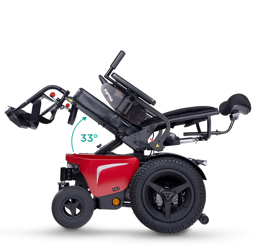 4. 續航力/爬坡能力乃基於攝氏溫度 20–35℃、136 公斤 (kg) 駕駛者及全新充滿電的電池進行測試,行駛於定速 10 km/h 且背墊角度在 95 度 (°) 之情況而定。具體而言,續航力乃依據 ISO 7176-4 規範執行「理論連續行駛距離」試驗,依循方形行進軌跡,順、逆時針各行駛 10 圈 (每圈 100 公尺),且起點與終點在同一位置,在電池放電 80% 的狀態下所測得之數值。