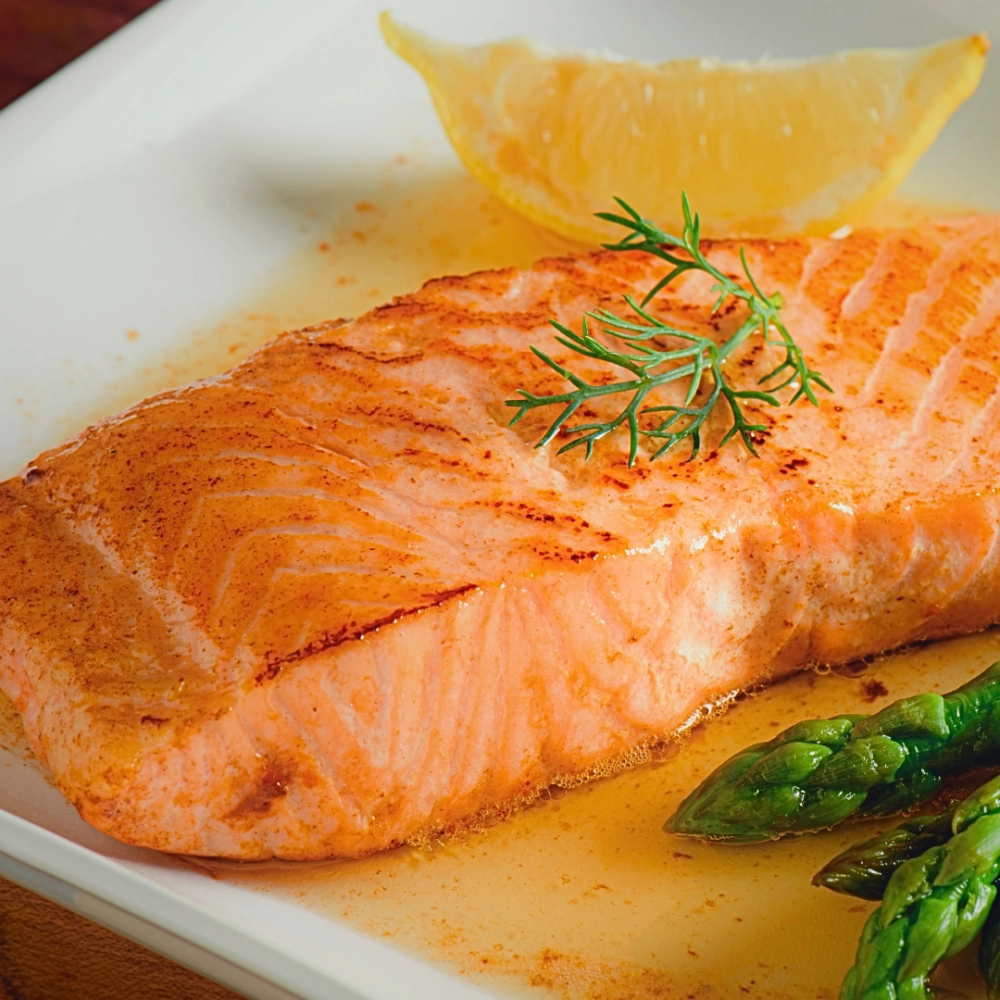 【清爽檸檬紙包魚】: 鮭魚放上烘焙紙,灑點胡椒、放上一小塊奶油與黃檸檬片,包起來進烤箱或氣炸鍋 180 度烤 12-15 分鐘。鎖住所有肉汁,鮮甜滑嫩,每一口都像在高級餐廳用餐!