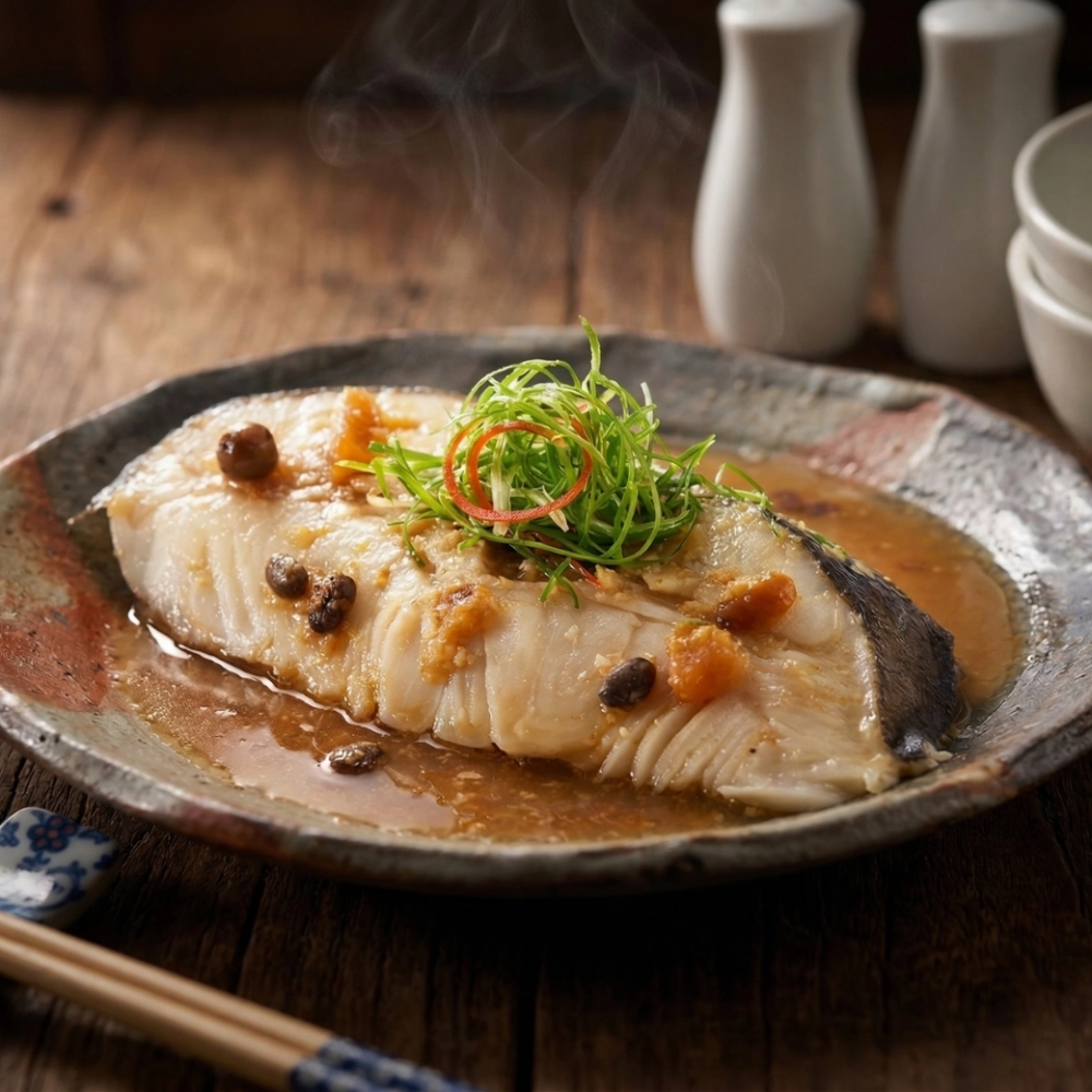 【經典清蒸鱈魚】: 魚身洗淨擦乾,鋪上薑絲與少許米酒,大火蒸 6-8 分鐘,最後淋上蒸魚豉油、撒上蔥花。肉質滑嫩如絲,每一口都是滿滿的鮮甜魚油!
