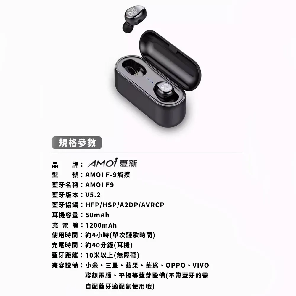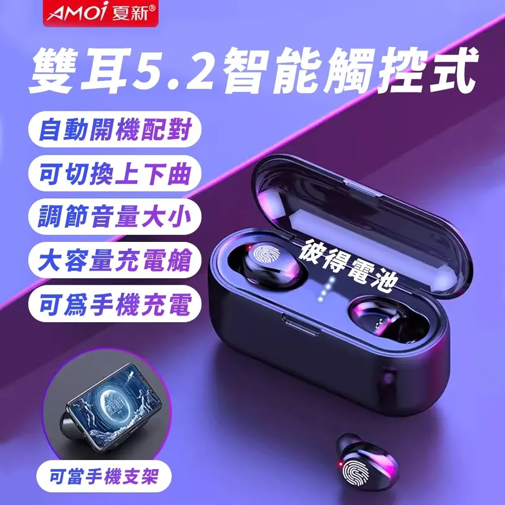 商品Amoi夏新【限定版】F9無線藍芽耳機 藍牙5.2 指紋觸控 HiFi音效 9D立體環繞音效 IPX7級防