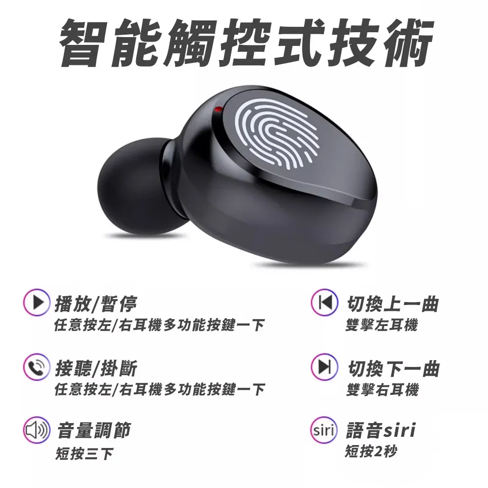 產品功能:播放暫停(單擊)、接聽掛斷(單擊)、招喚Siri(短按)、音量調節(三擊)、切換上下曲(雙擊)、開關機(長按5秒)