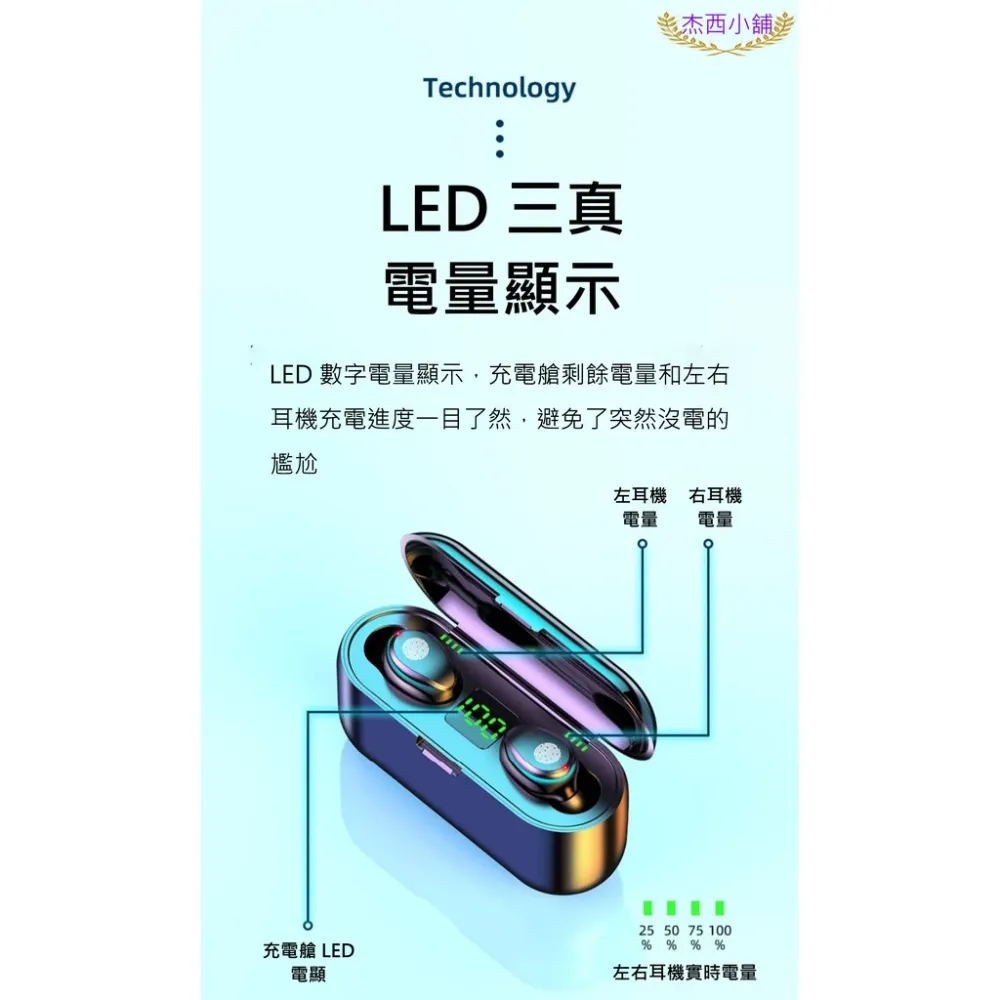 商品Amoi夏新【至尊版】F9 無線藍芽耳機 藍牙5.0 LED三真電顯 自動配動 蘋果、安卓適用