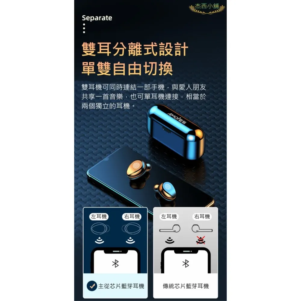 商品Amoi夏新【限定版】F9無線藍芽耳機 藍牙5.2 指紋觸控 HiFi音效 9D立體環繞音效 IPX7級防