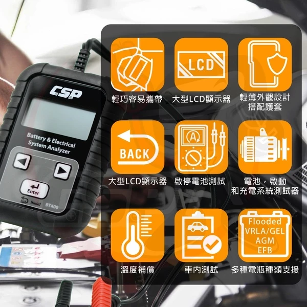 ▲ 精準測試12V電池、12V啟停電池測試以及12V及24V電力系統