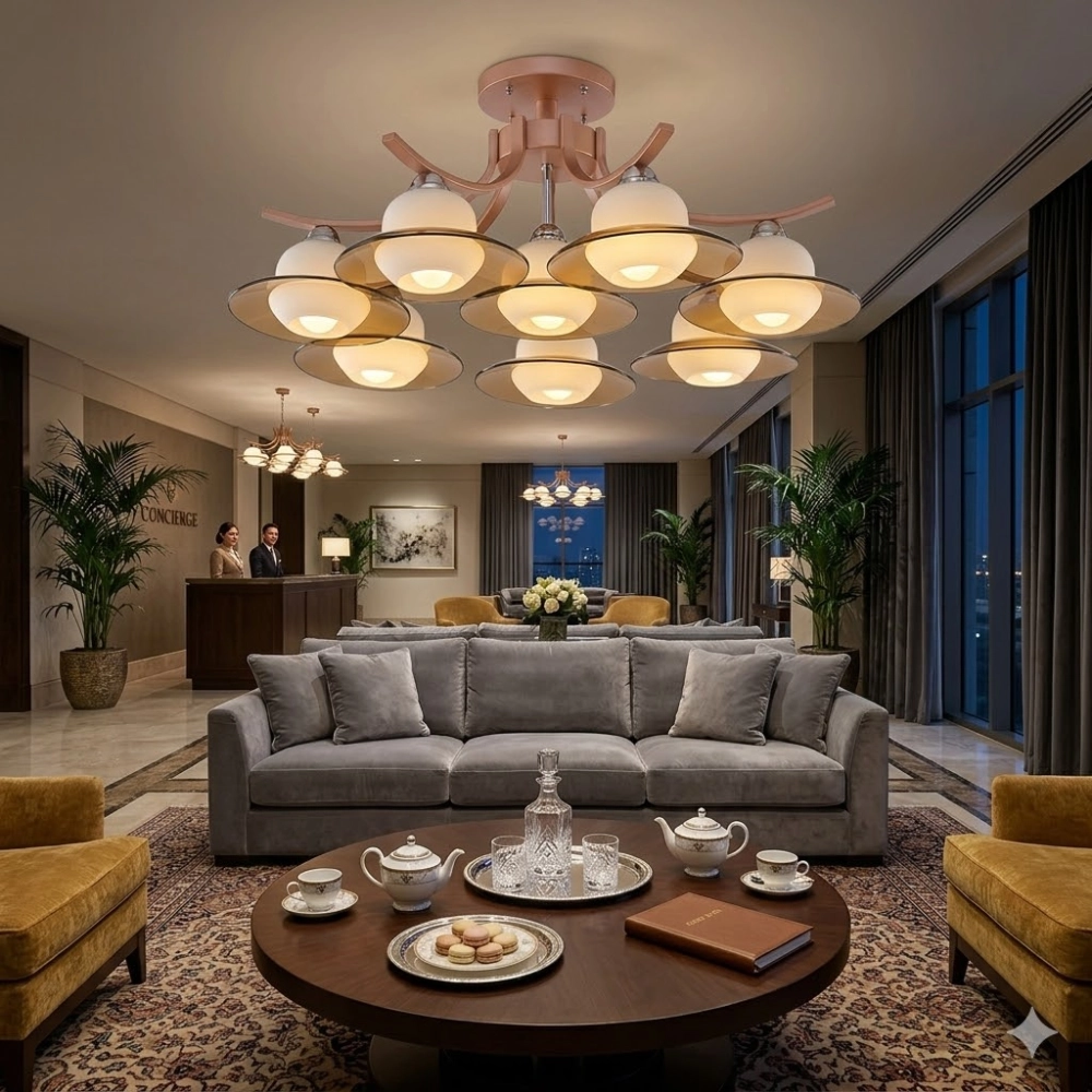 產品名稱 玫瑰金 半吸頂燈 8 燈 MX89214G-8