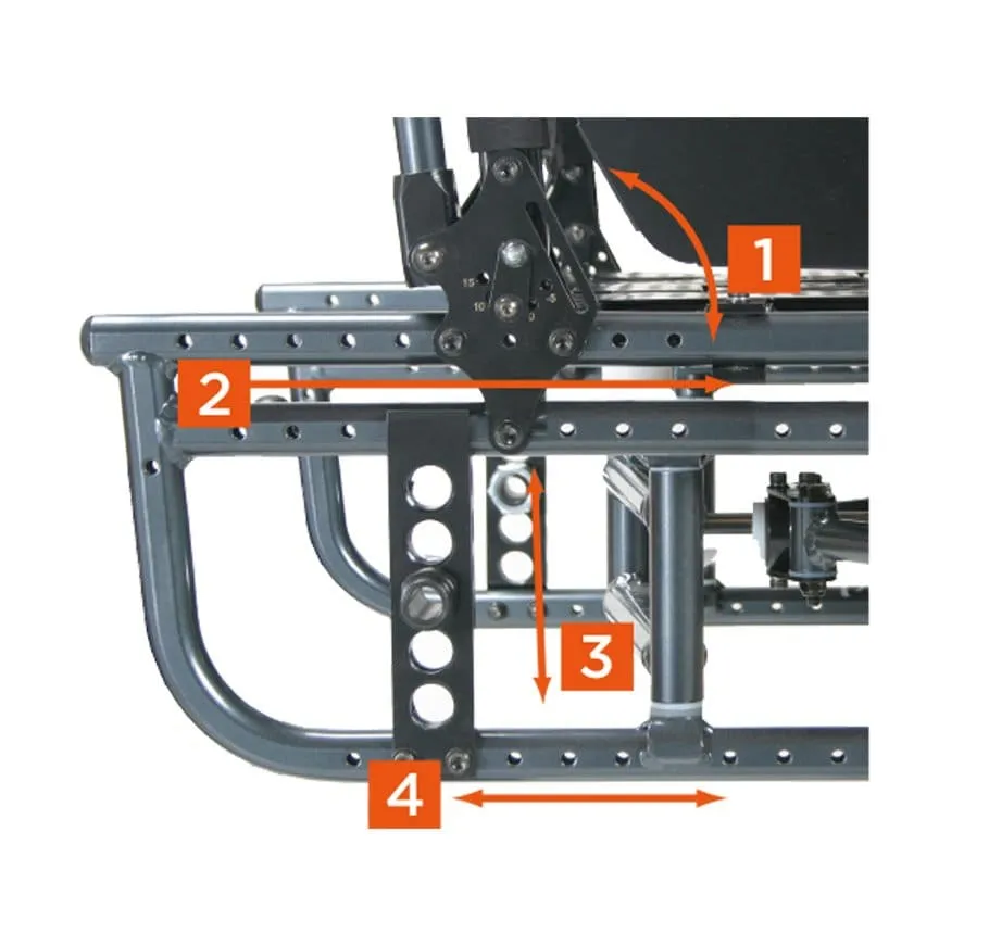 座深、座寬、座高、背墊角度以及後輪重心等,並可依照不同時期的身體機能進行個人化微調。可折疊且堅強骨架的結構設計