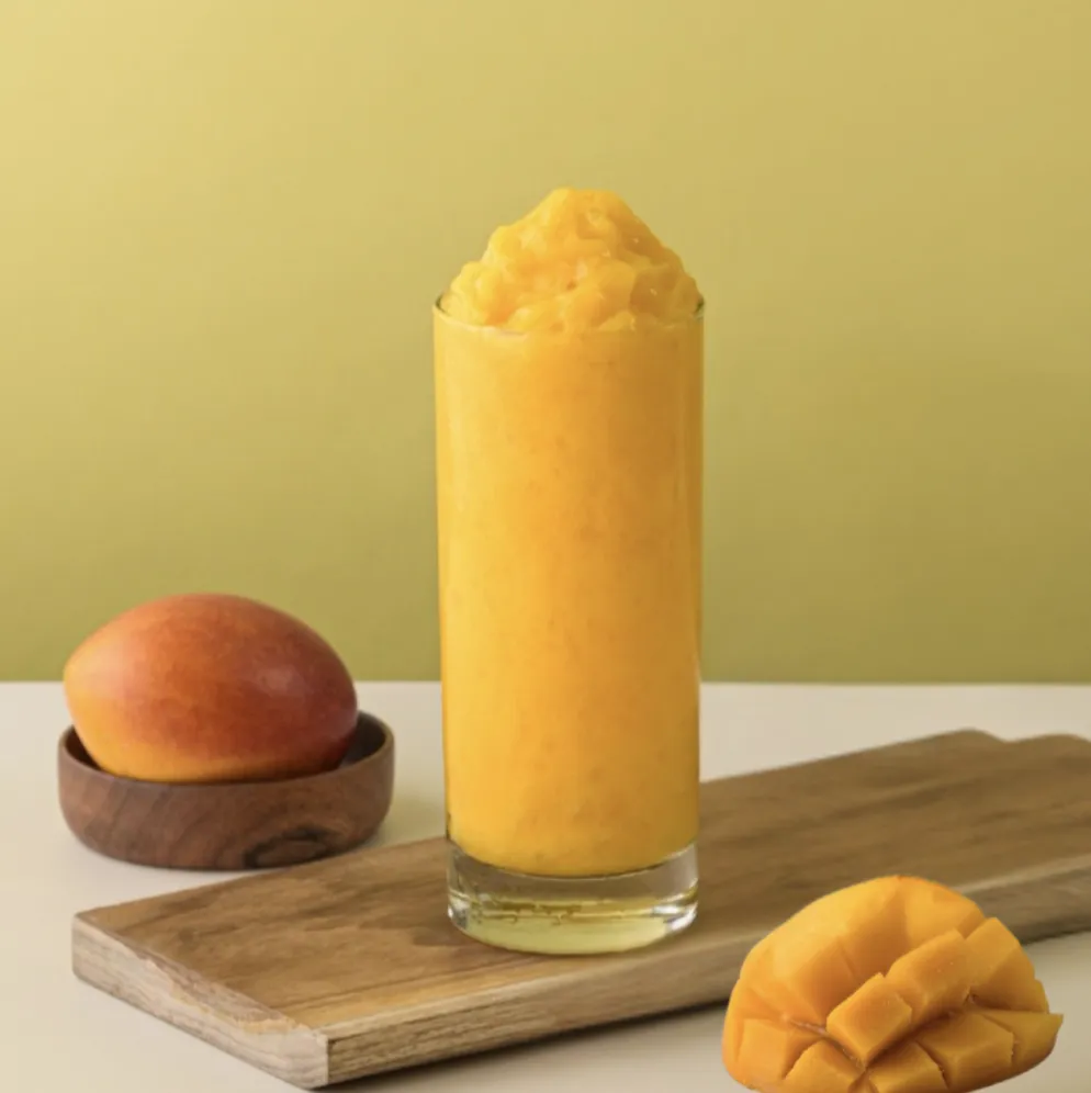 嚴選愛文芒果與自製手工熬煮的芒果醬、現打成香氣濃郁清甜的雪沙,搭配自製綠茶凍、果香茶香層次豐富、清涼爽口。
