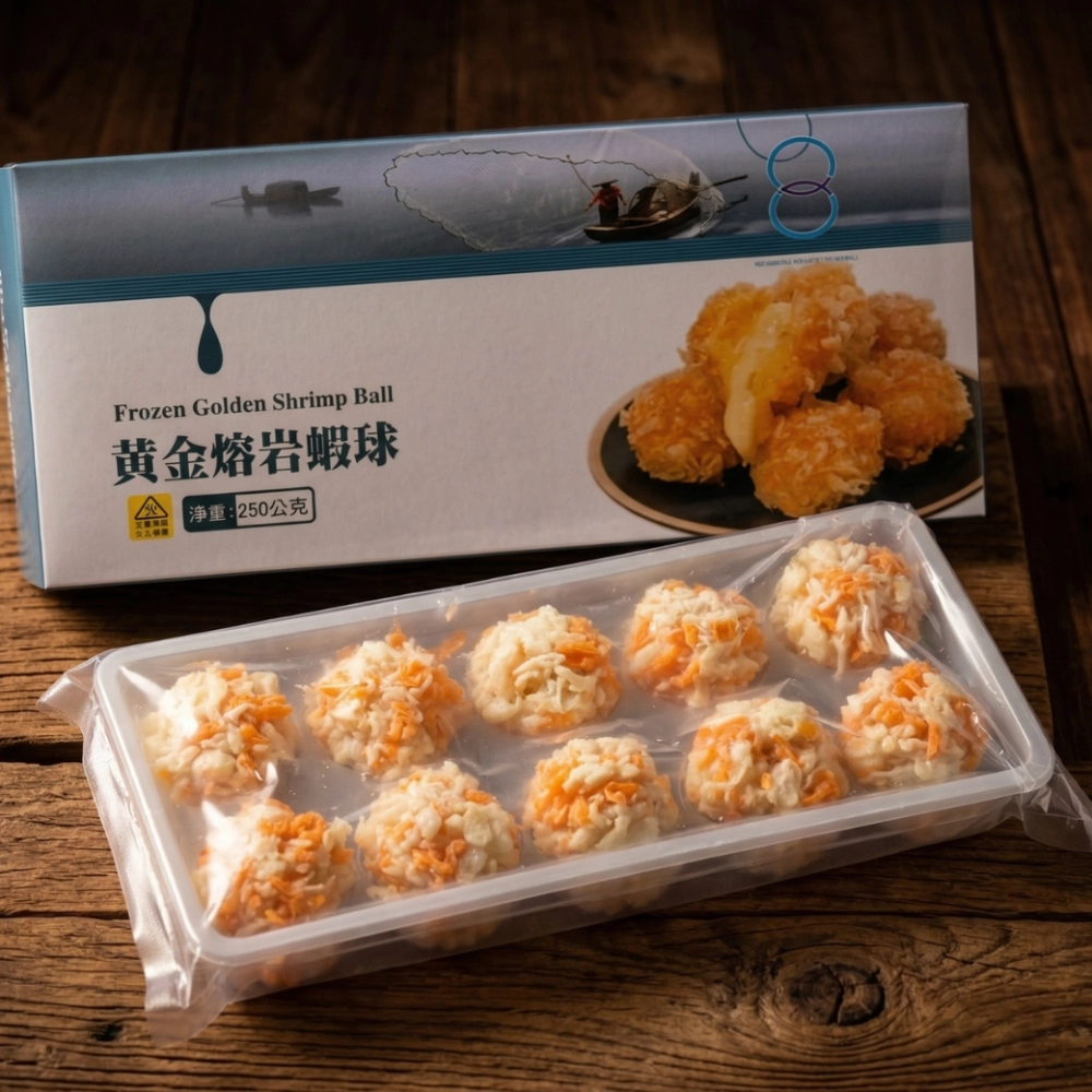 每包 250g 剛好是小家庭的一盤菜份量,不需要大費周章解凍、裹粉,直接從冷凍庫拿出來加熱就能端上桌。不管是下午茶點心、晚餐加菜,還是過年過節招待客人的體面料理,這款黃金熔岩蝦球絕對是餐桌上的視覺與味覺焦點!