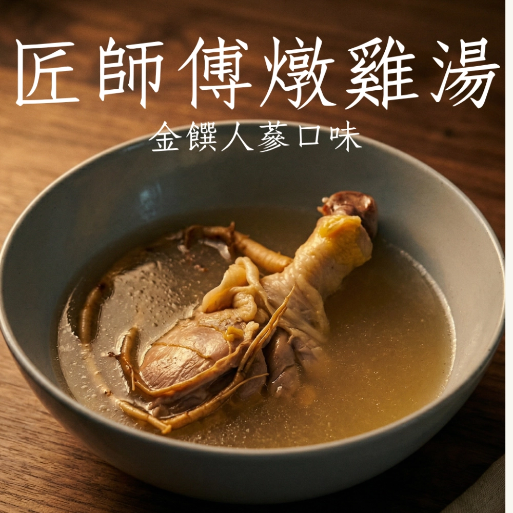 不用再跑中藥行辛苦抓藥,也不用熬到滿頭大汗!這款由名店「強匠 (匠師傅)」推出的金饌人蔘炖雞湯,正是為忙碌現代人設計的食補聖品。湯頭採用特選人蔘與多種漢方食材精燉,人蔘香氣優雅而不苦澀,喝起來清甜回甘、香氣濃郁,每一口都能感受到滿滿的元氣補給!