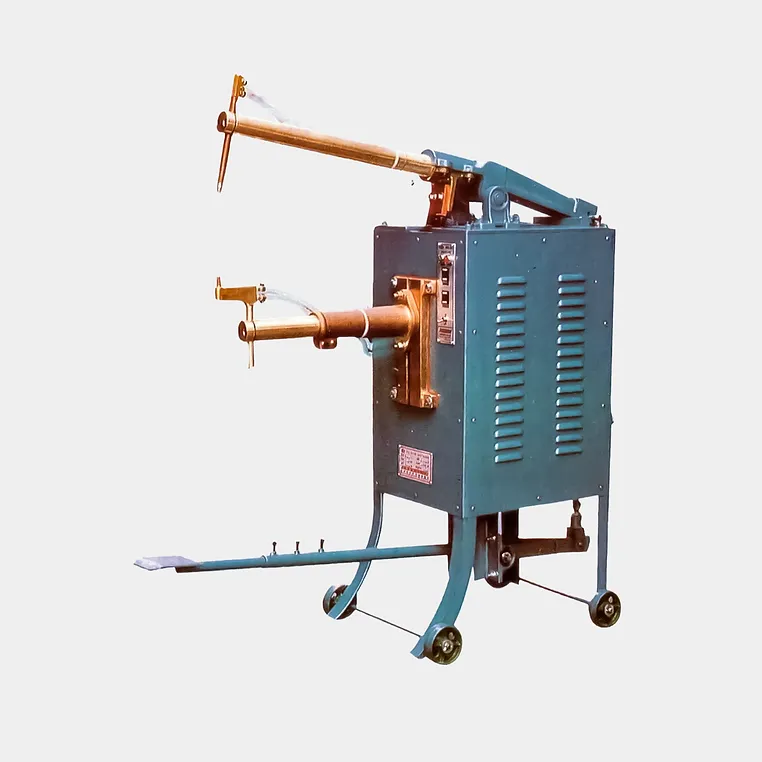 - 上下電極可依工件的形狀來設計調整,踏板一踩就可焊接。