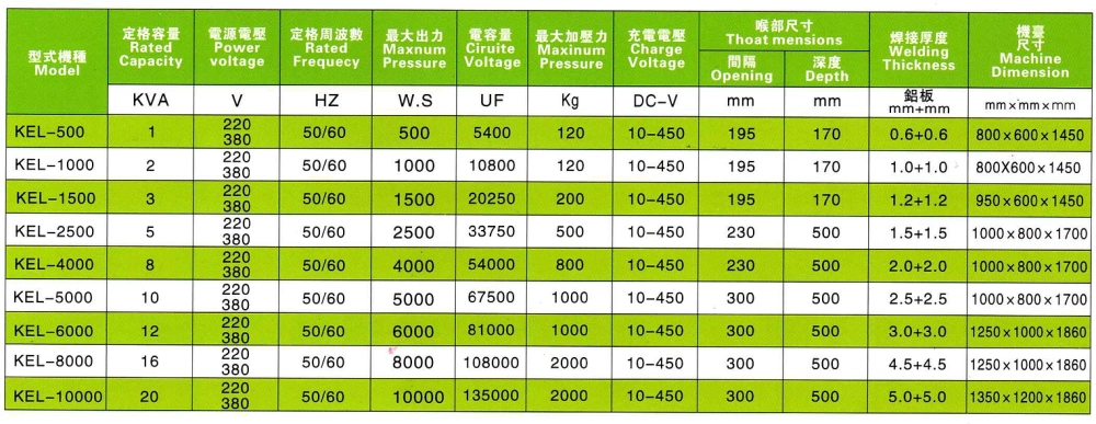 - 由於放電時間快速0 . 02~0 . 003秒,完全放電, 電極損耗小,溶接品質穩定可靠。