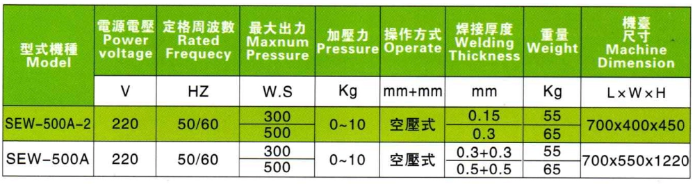 • 晶體式直流點焊機 SEW-500A 空壓式