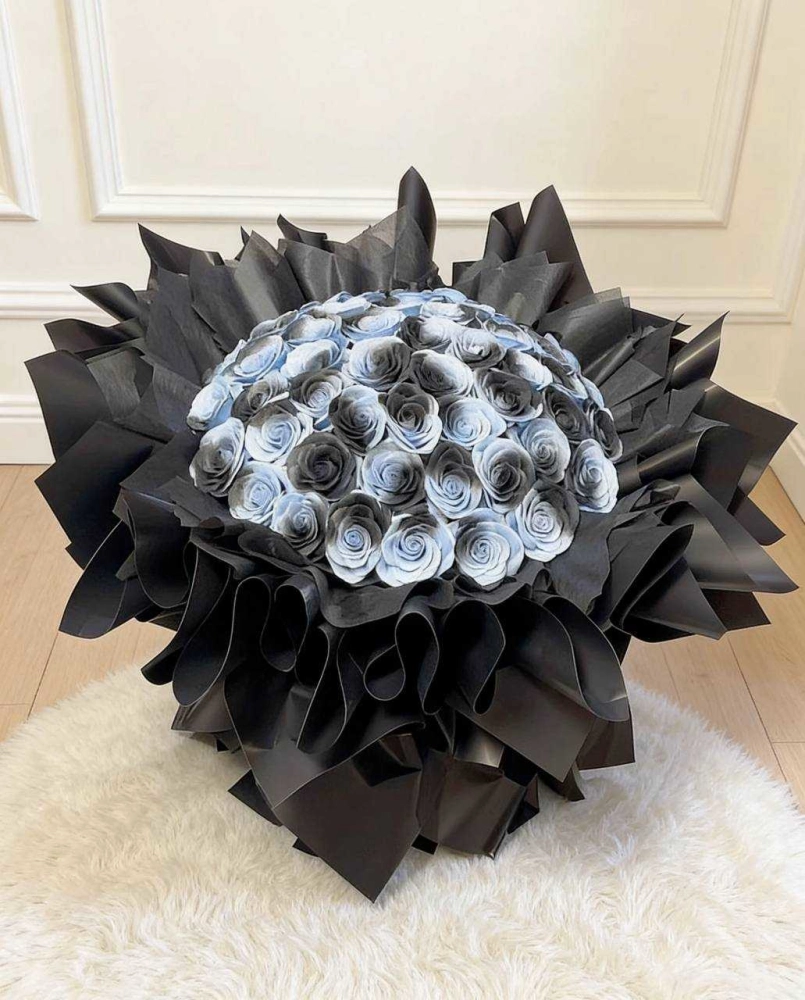 • 淺藍漸變黑甦醒永生玫瑰花束