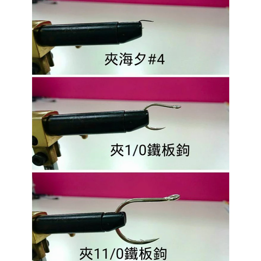 ※改良以往市售各品牌同質性商品只能夾小鉤的缺點,AT-30最大可以夾BKK8070鐵板鉤#11/0,最小可以到袖型#1號鉤以下。