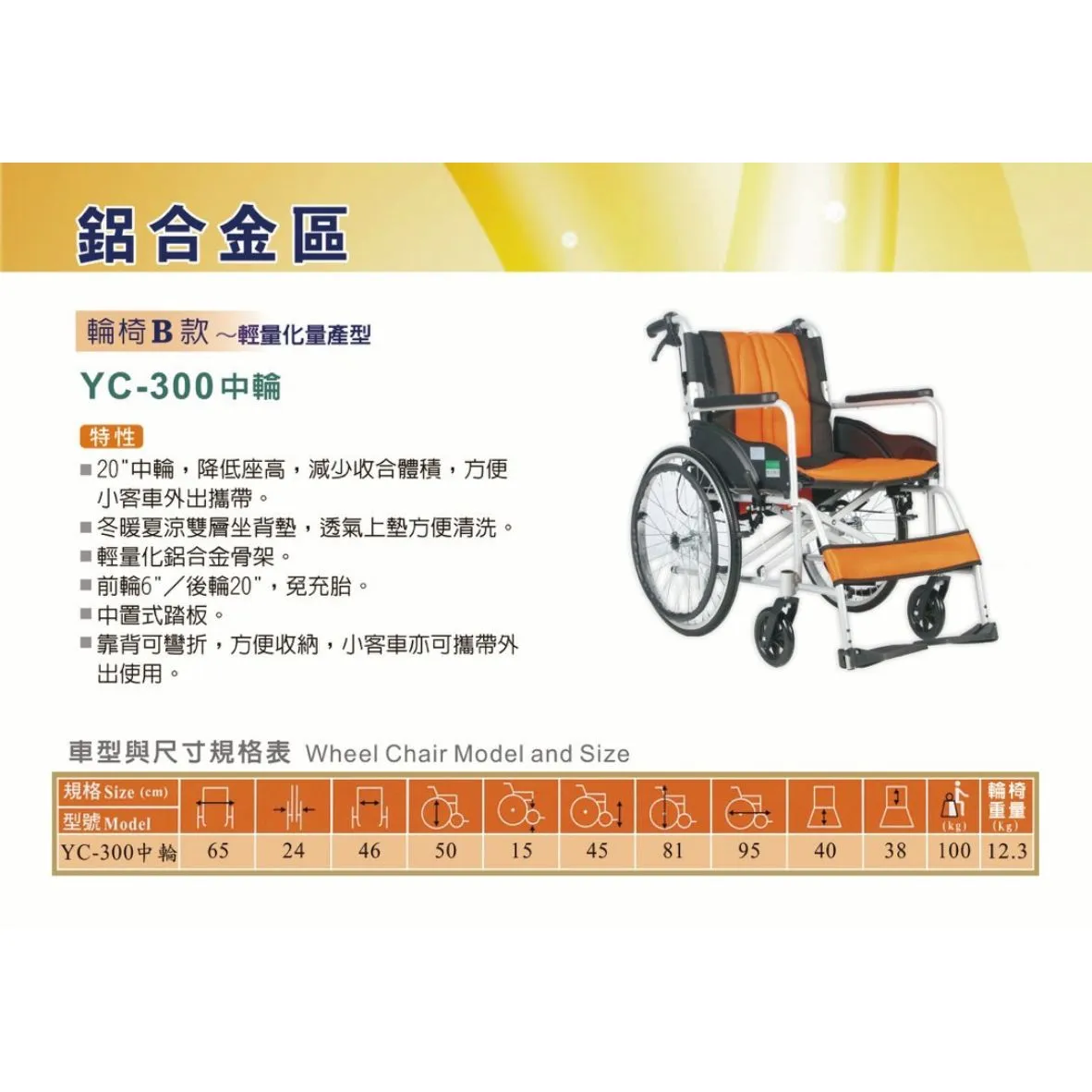 商品"頤辰" YC-300大輪(輪椅B款~輕量化)