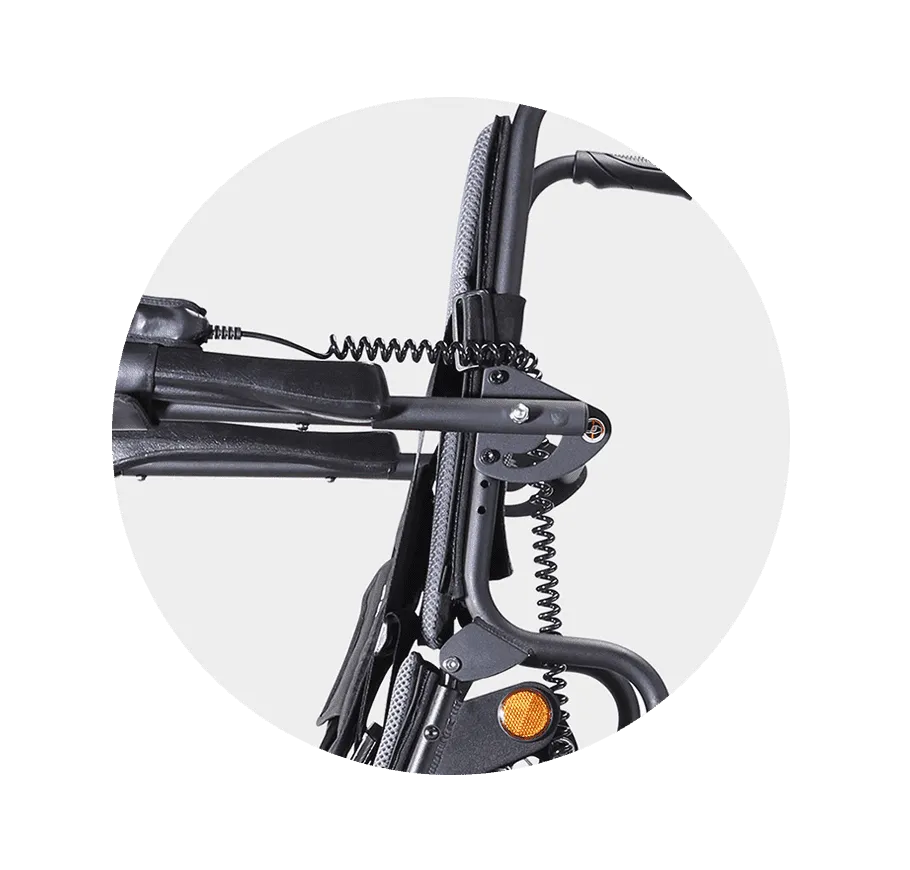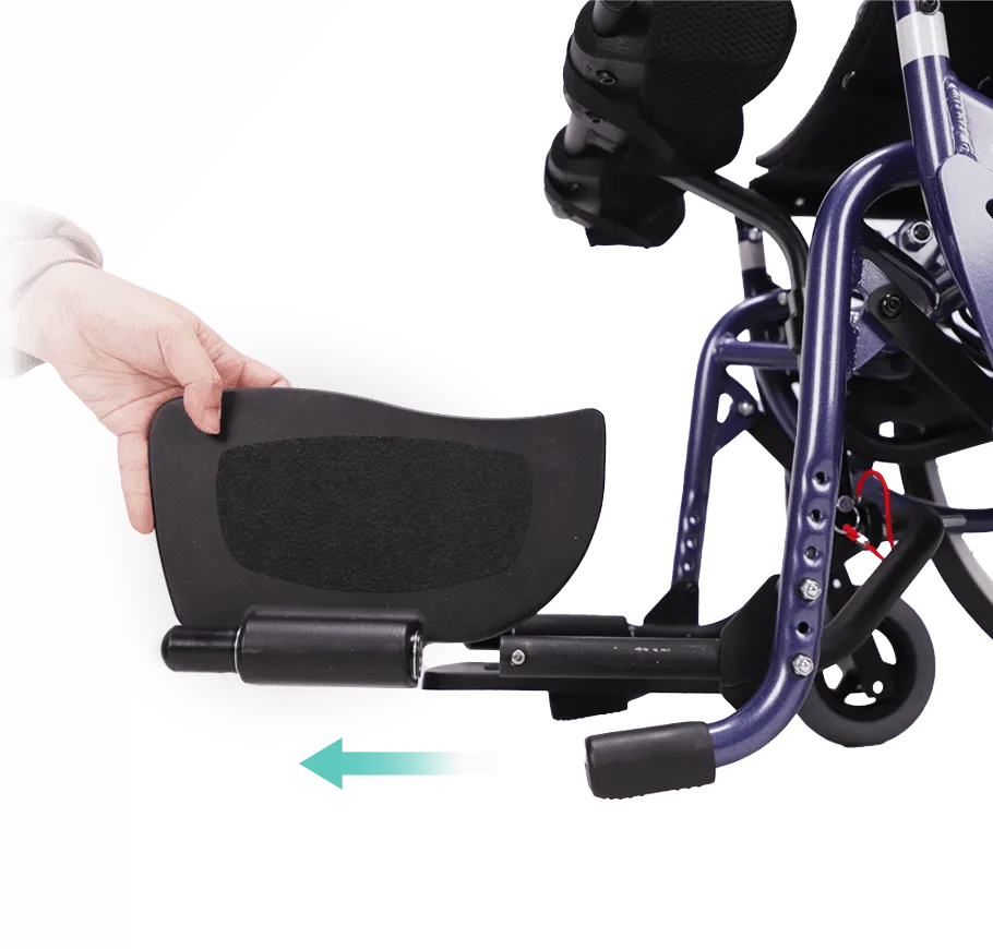 腳踏板採用翻轉式可收合設計,並配備一鍵式快拆功能,無需工具即可拆卸,避免在轉移或折疊輪椅時造成阻礙。更順手的操作體驗