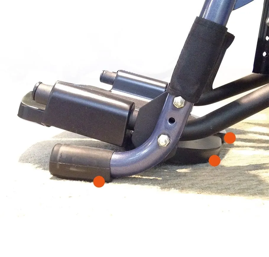 輪椅前方的四個接觸點,增加站立時的安全性及穩定性。
