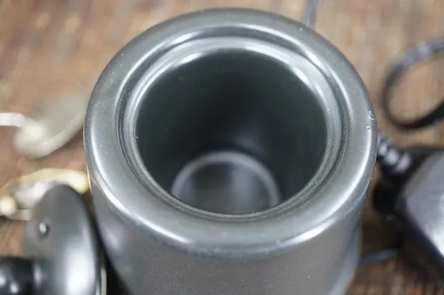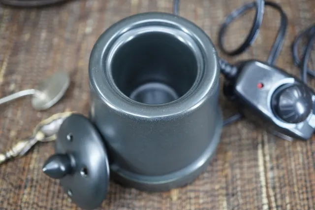 2. 精油: 入熱水約8分滿,打開電源將微調開關打開調到約(約第10〜15條線刻度)處,約10分鐘後,凹槽處會達到80℃。滴上5-8滴單方精油於頂部凹槽處,即可開始盡情享受美妙的芳香療法。