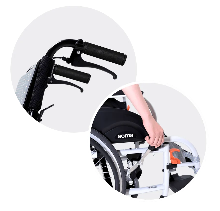 * 雖然本車款靜態穩定性的測試已符合法規 ISO 7176-1 的要求,但仍建議您平時勿跨越超過 7° 以上的斜坡。若您日常活動有跨越斜坡的需求,請選購並安裝防傾裝置 (防傾桿) 以增加車子於斜坡上的穩定性。