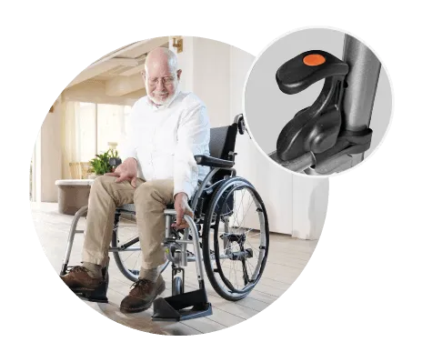 為照顧者貼心設計,輕踩一下即可避免輪椅後傾;不用彎腰拆掉防傾桿,單腳解除防傾功能,即能輕鬆過階。體貼照護者,省力與使用安全兩者兼具!