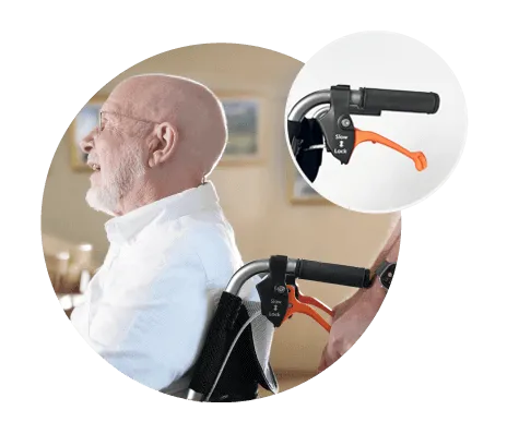 可作動的功能以橘色部件設計,操作更直覺,使用、照護更輕鬆剎車免彎腰