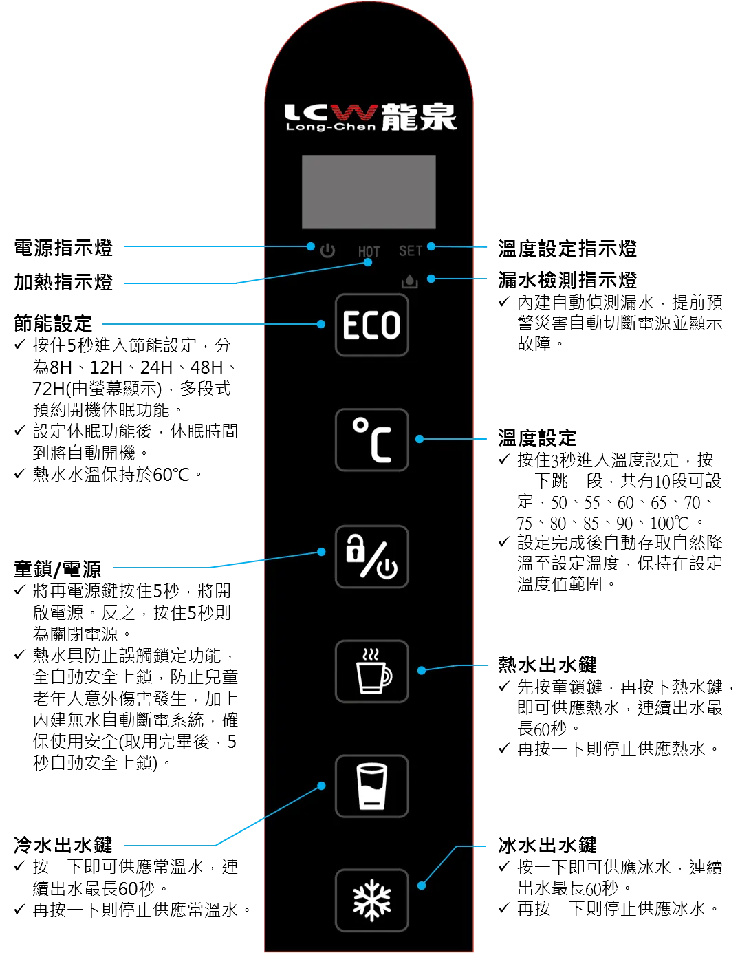● 熱水解鎖安全按鍵