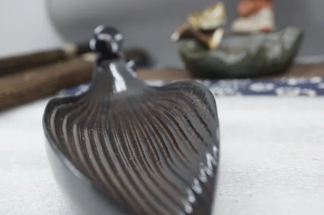 原木臥香爐,雕刻成葉子外觀. 有如身處樹林.流水.蟲鳴.鳥叫的戶外品香.