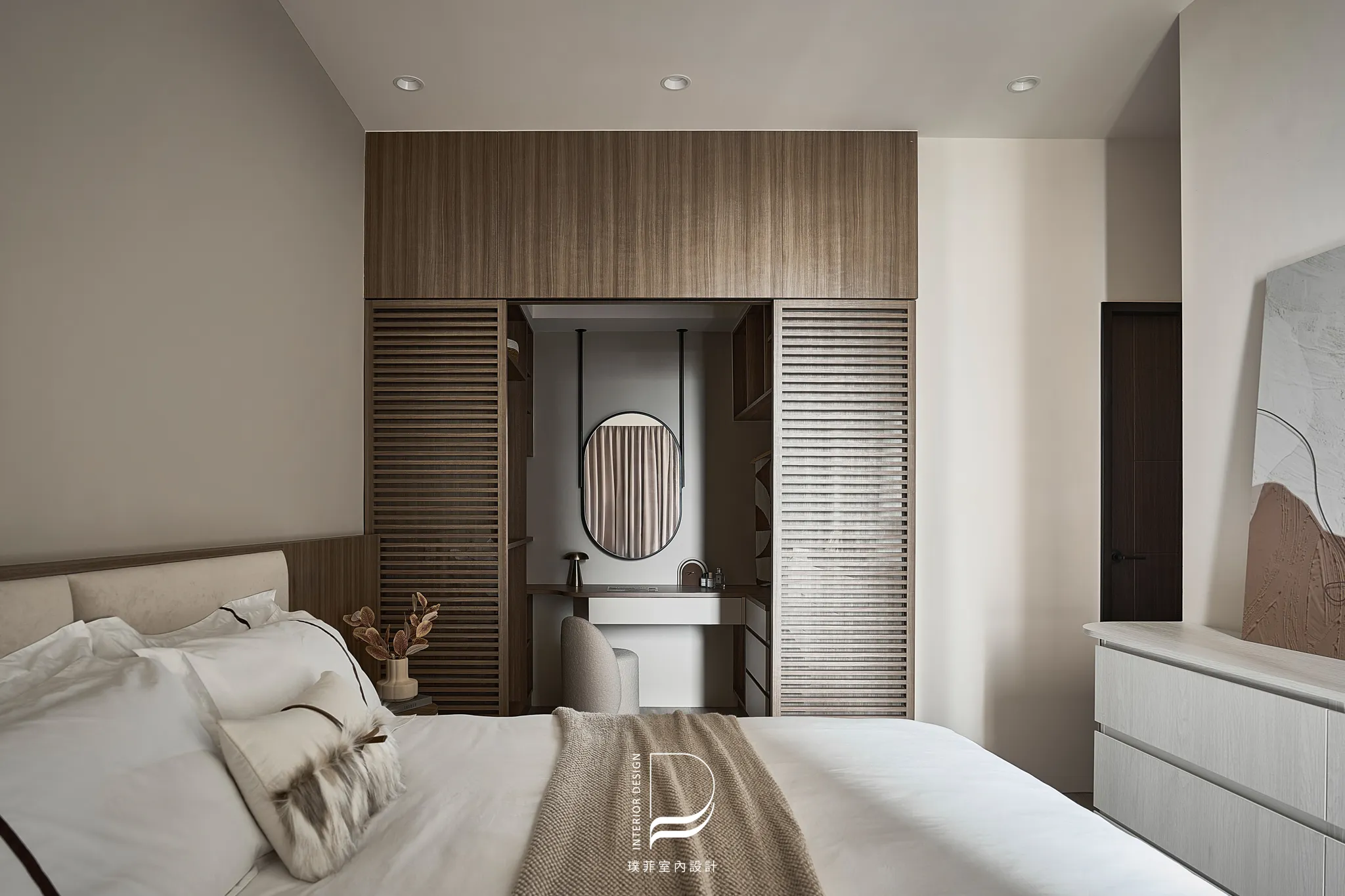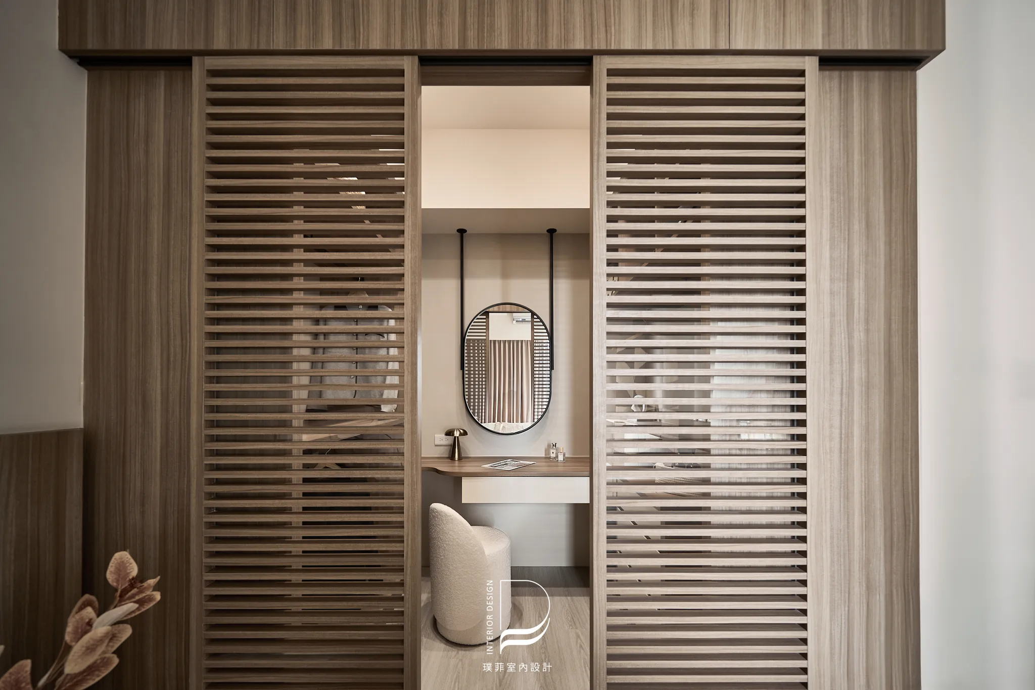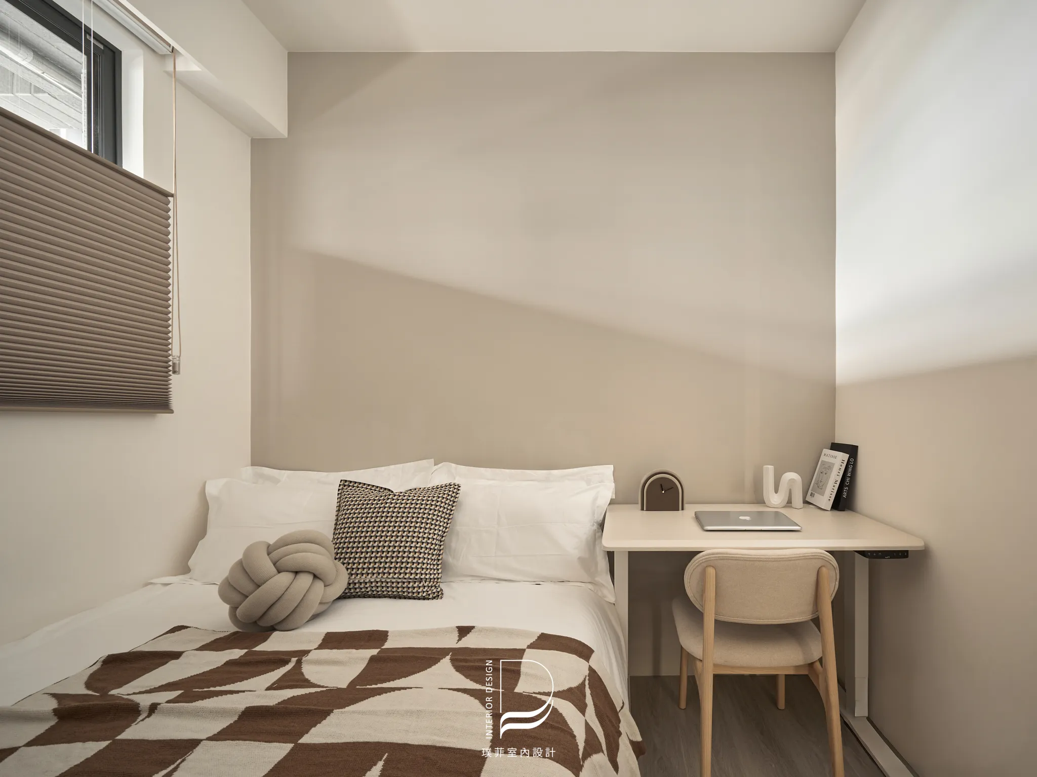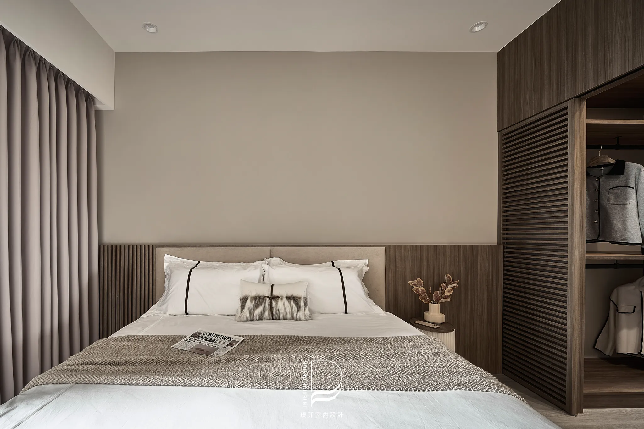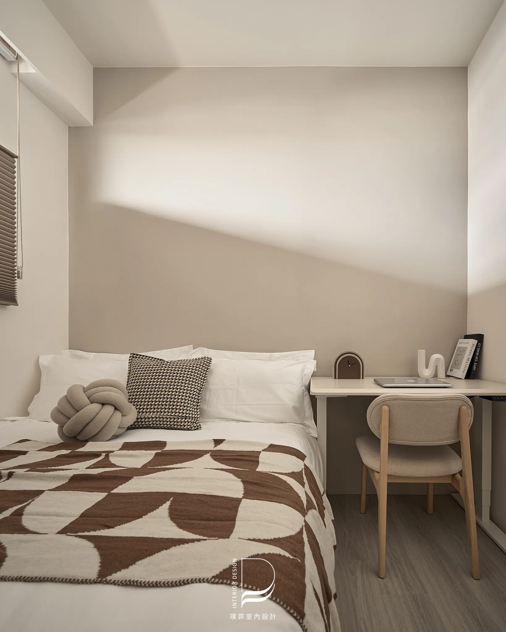 以兩種低彩度大地色系作為空間基底,透過材質、光線與比例的細緻調整,讓色彩在同一場域中自然過渡與共存。