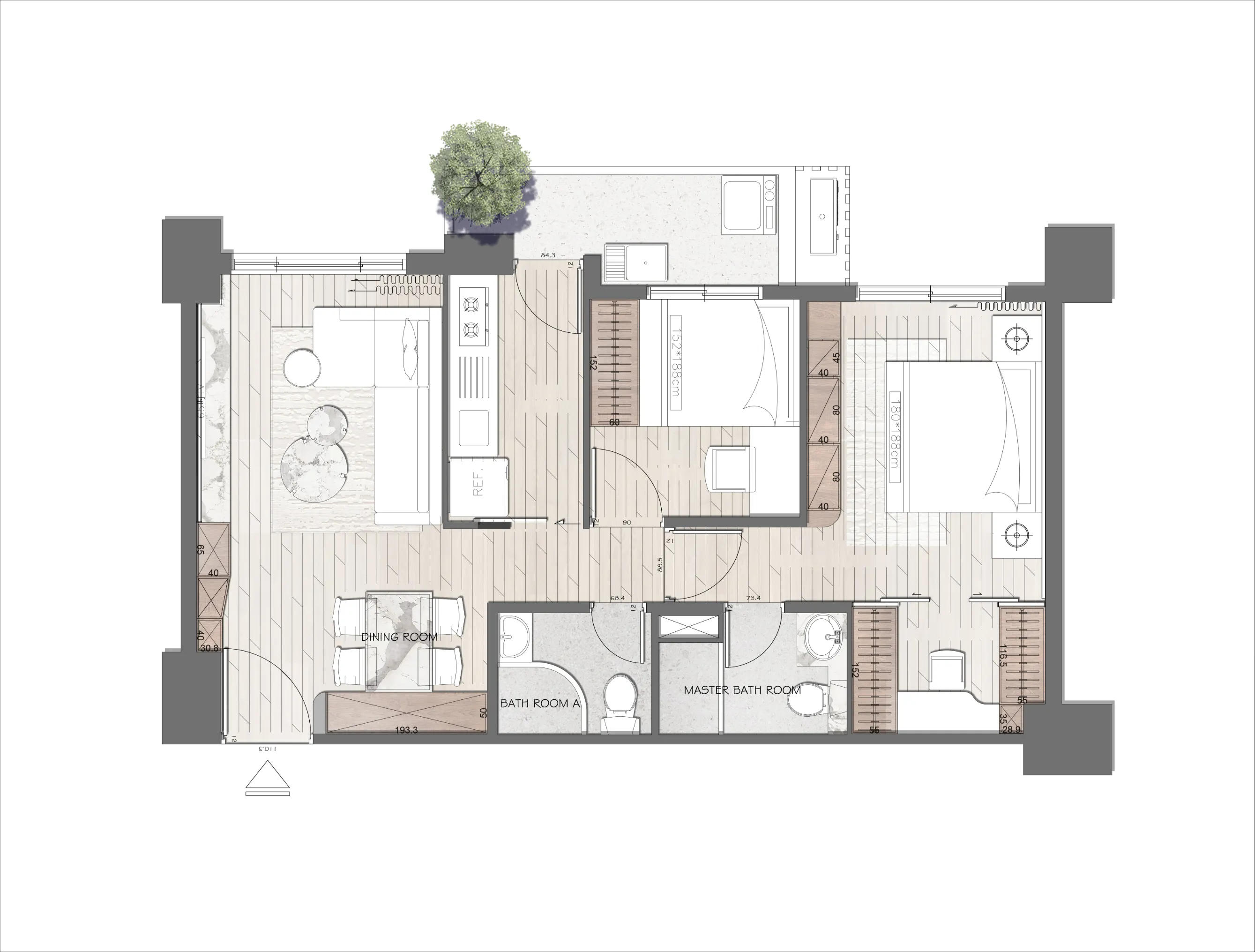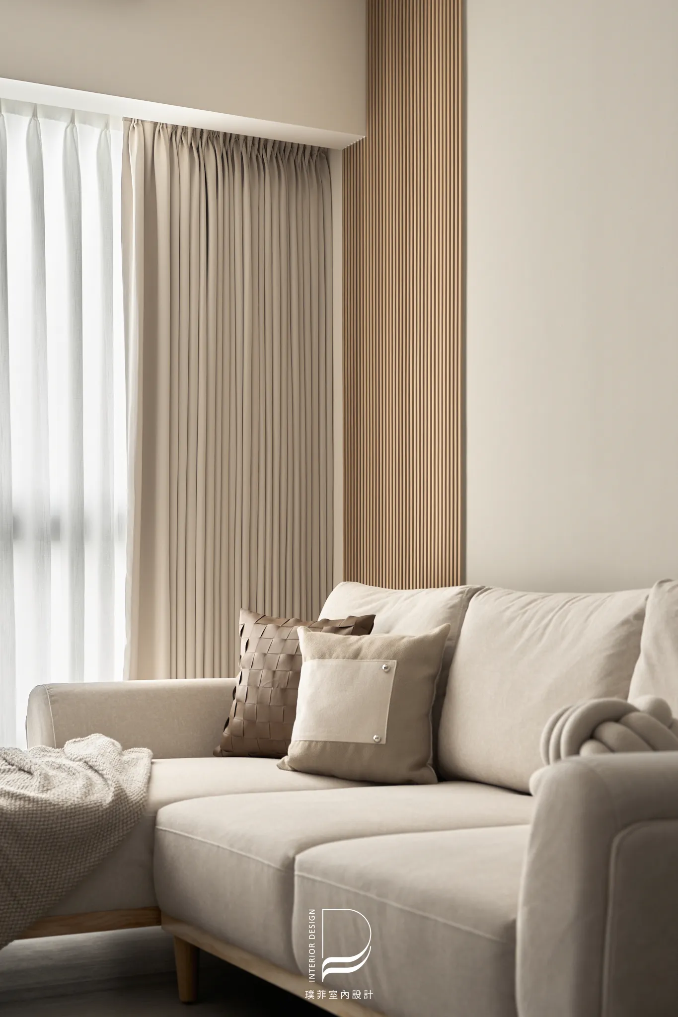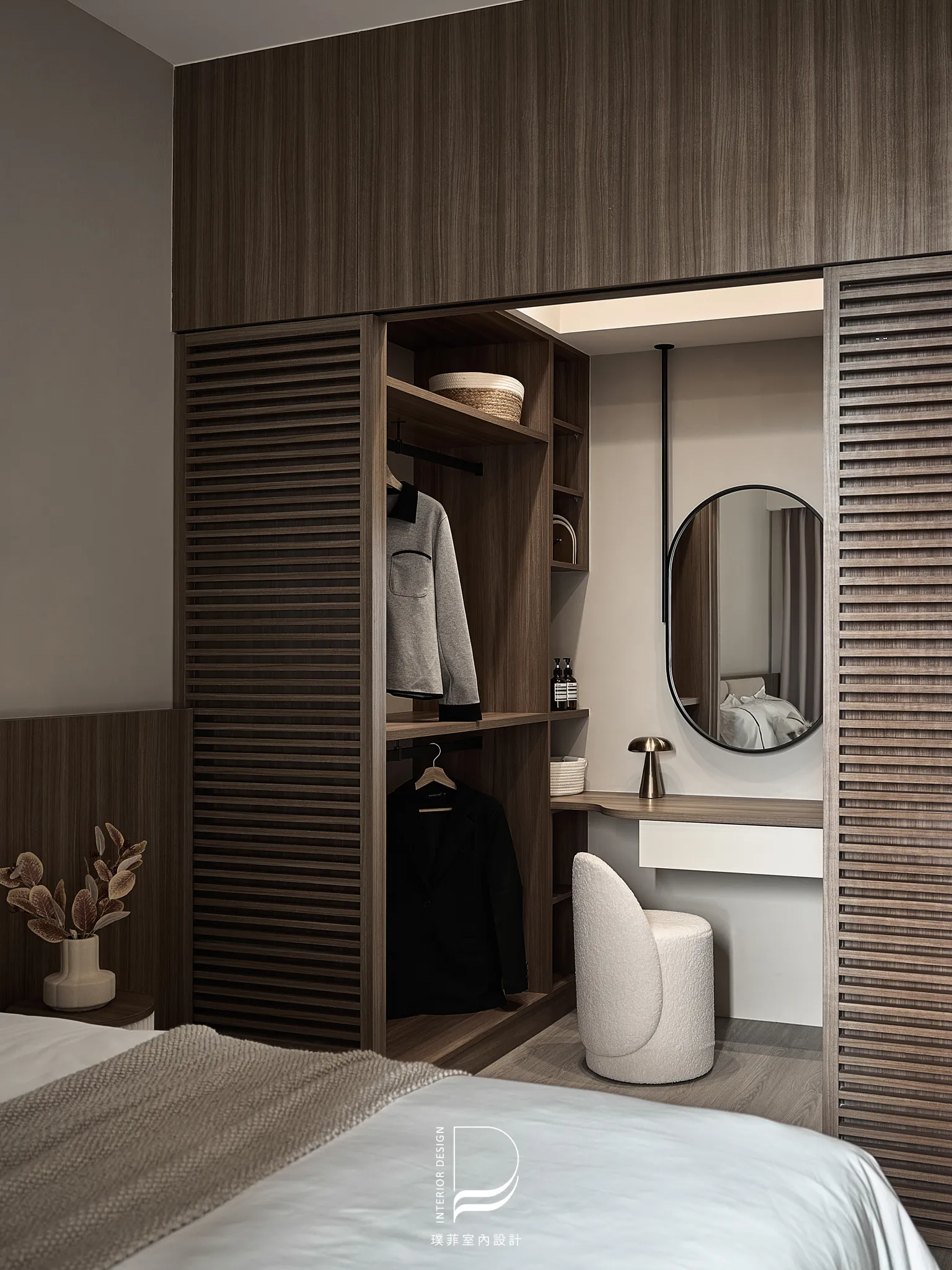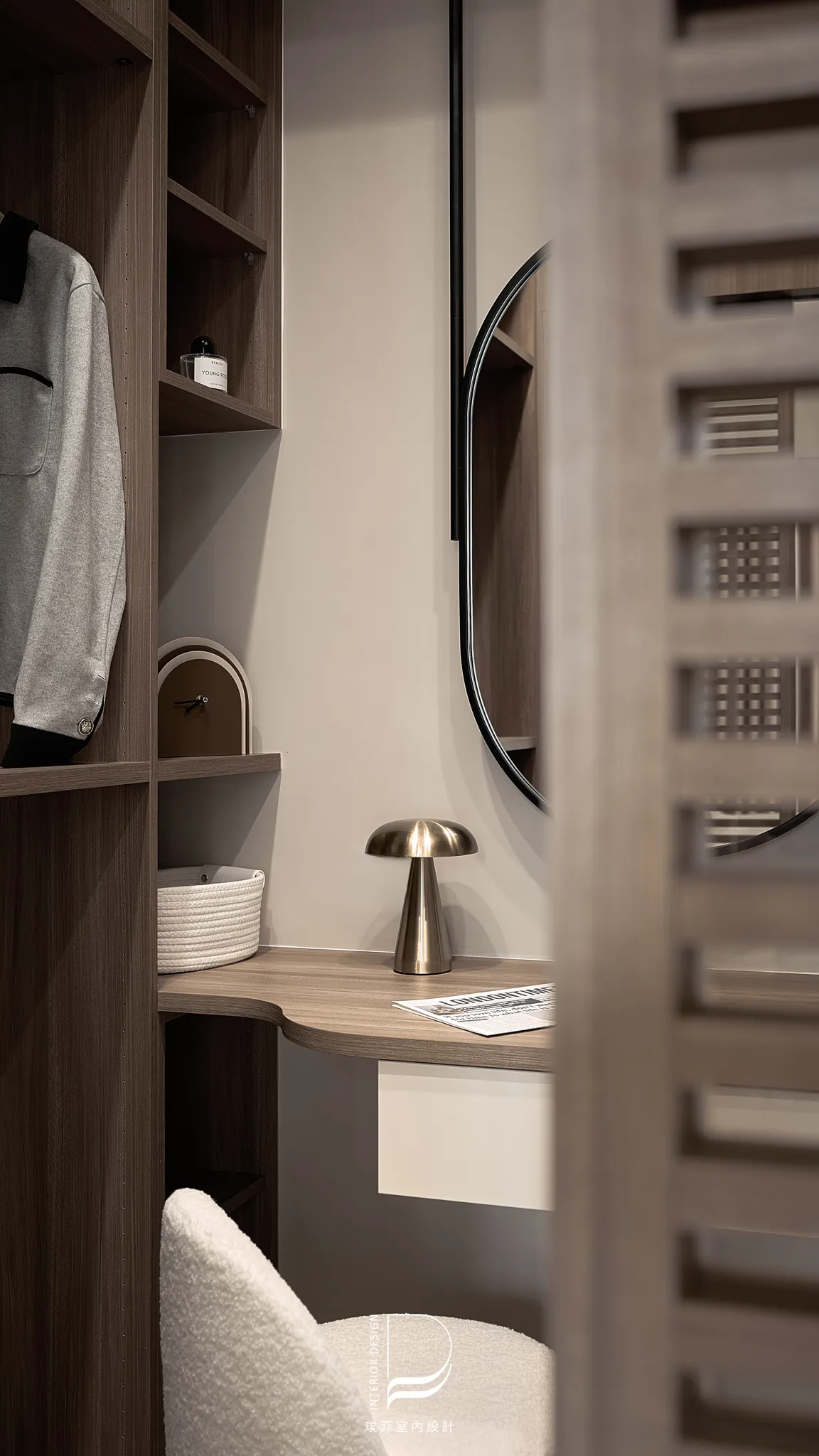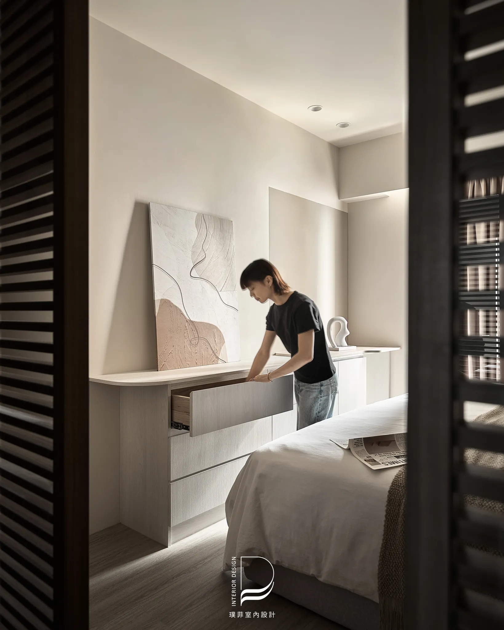 以兩種低彩度大地色系作為空間基底,透過材質、光線與比例的細緻調整,讓色彩在同一場域中自然過渡與共存。