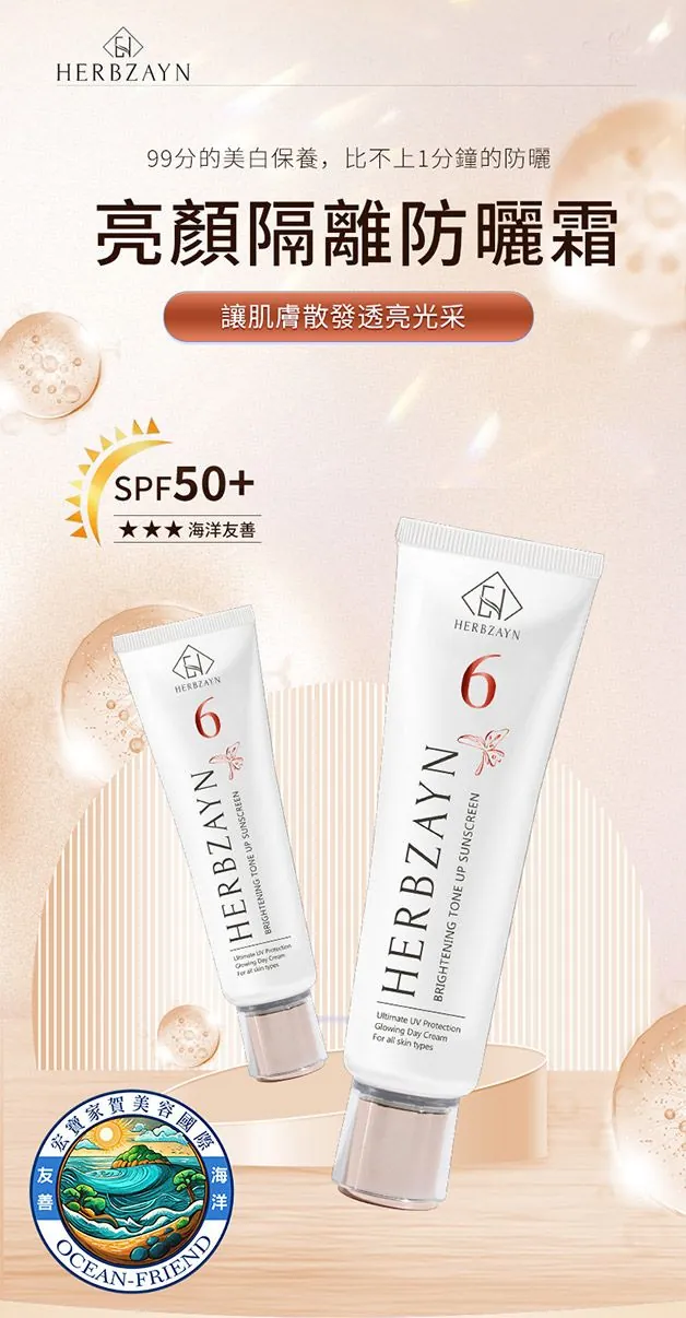 BRIGHTENING TONE UP SUNSCREEN 七效合一 ,全效防曬乳 99%的美白保養,比不上1分鐘的防曬 美白、保濕、防曬、隔離、抗氧化、抗老化、矯正膚色 七效合一 ,全效防曬乳!保護肌膚 愛護海洋 產品不含酒精、環境賀爾蒙、西藥等有害物質,孕媽咪和敏感肌皆可以安心使 我要購買