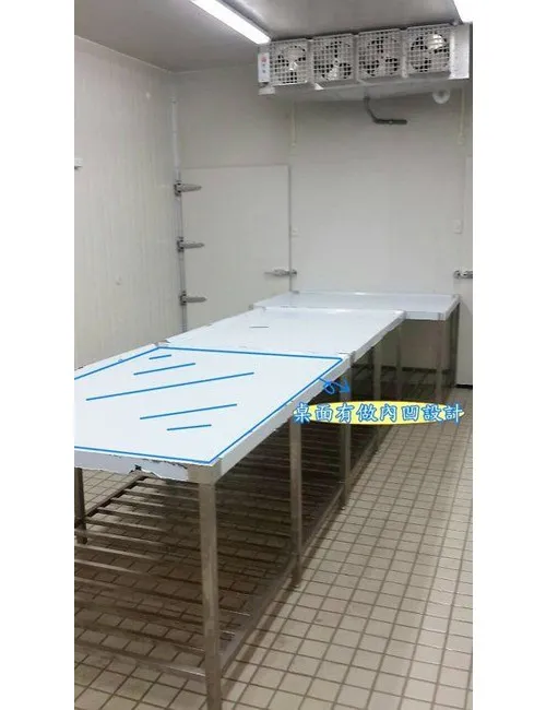 專業訂做 肉片處理台子 / 內凹式工作台 / 訂做式台子,台面凹槽設計能防肉的血水流的到處都是。