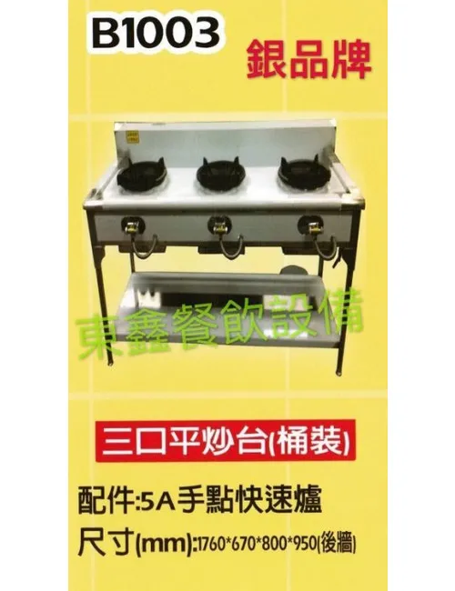 全新 B1003 銀品 牌 3口平炒台/炒菜台(桶裝)