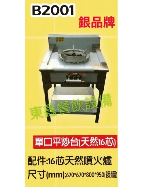 全新 B2001 銀品 牌 單口平炒台/炒菜台(天然16芯)