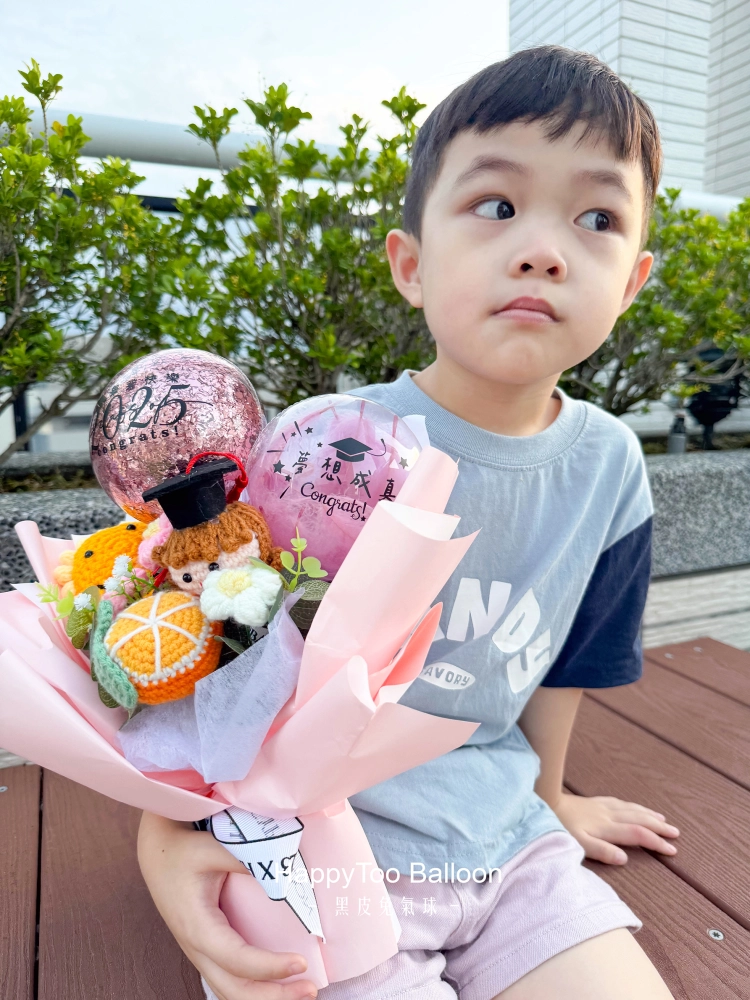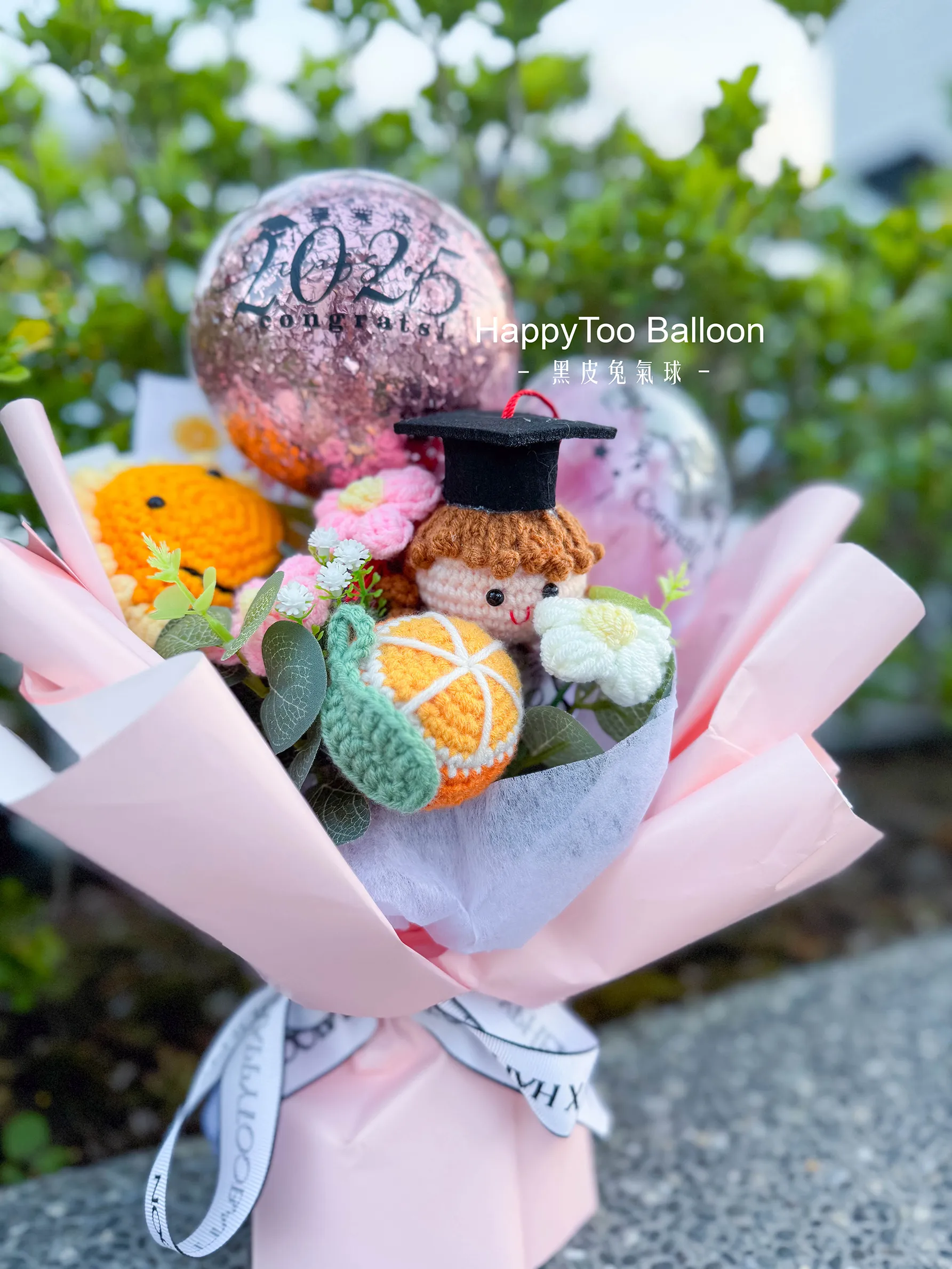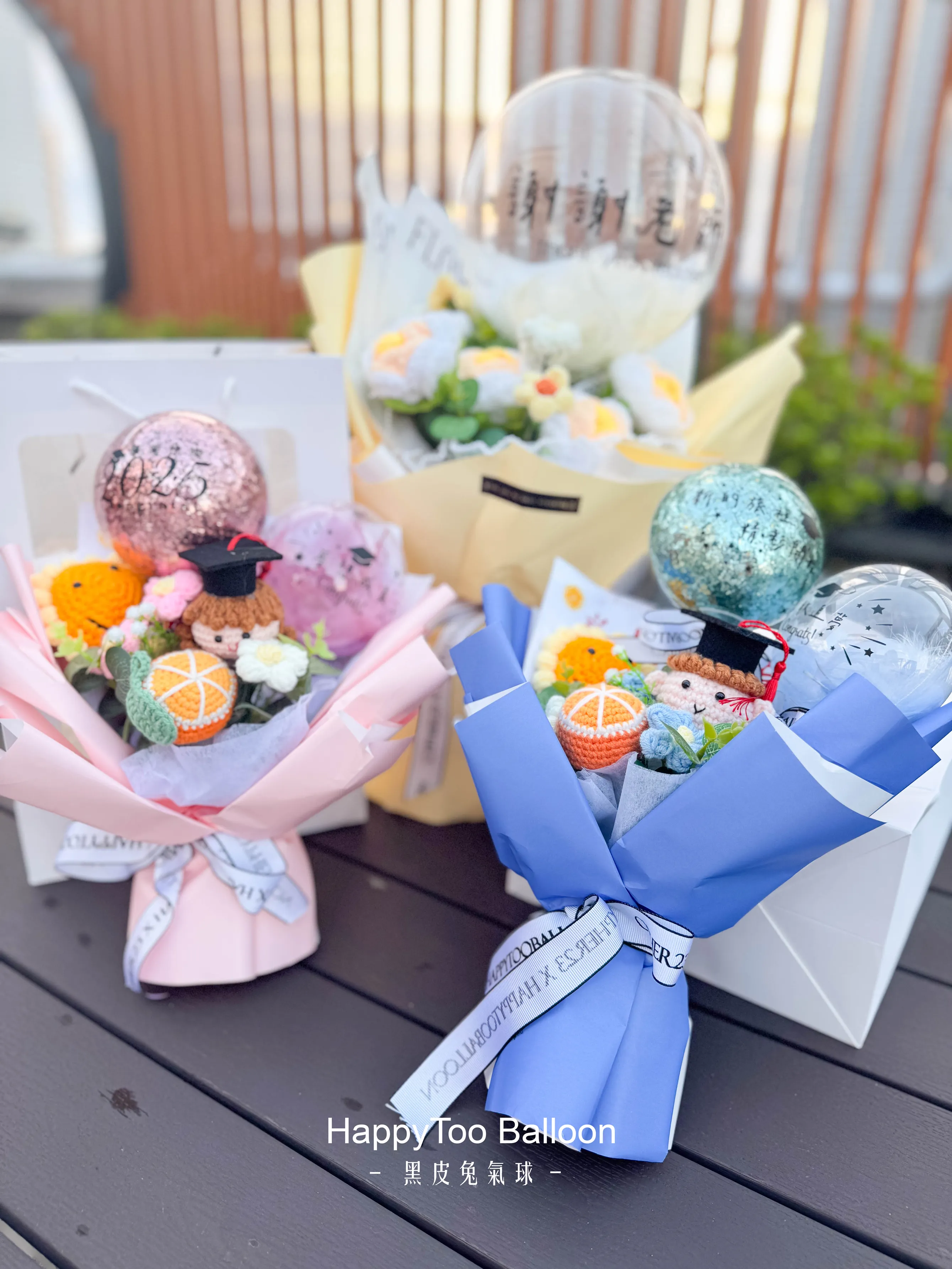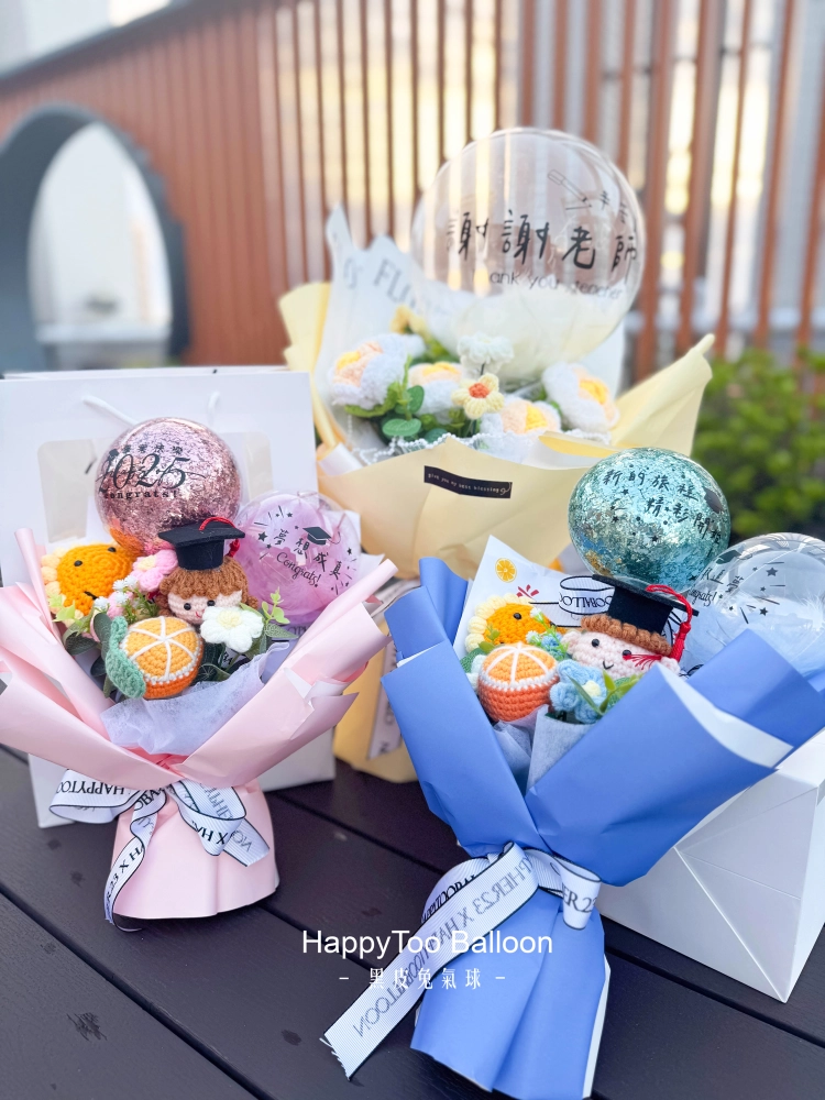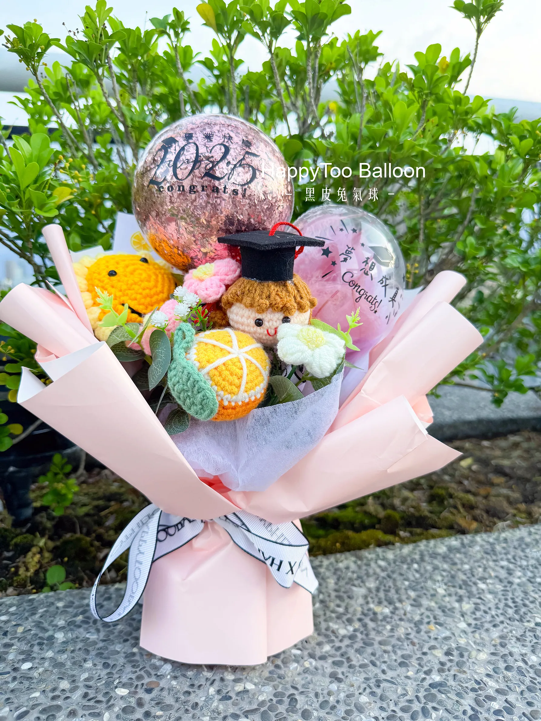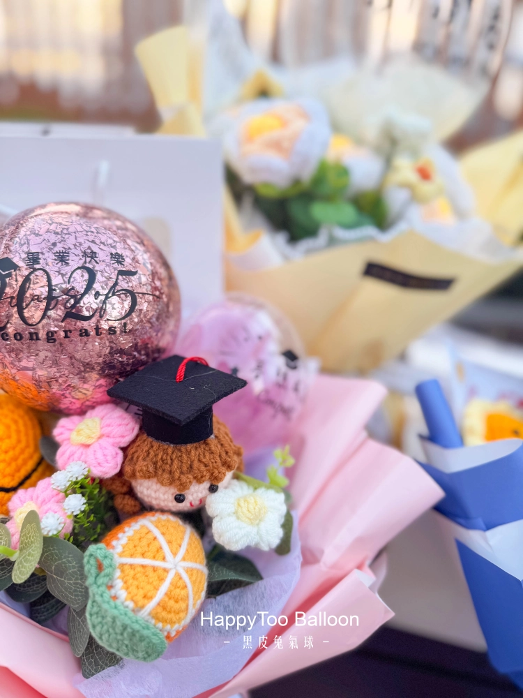毛線手作花 × 畢業帽娃娃 × 祝福氣球