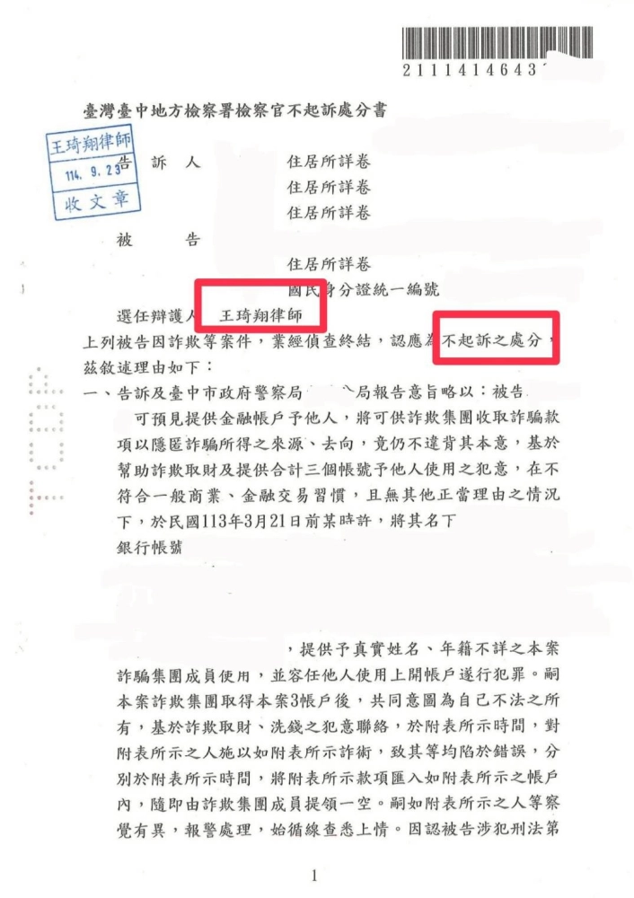 本件被告與一般遭網路上詐騙帳戶之情形較不相同,其係遭認識數年之朋友詐騙,被告與該朋友為工作上之同事,且因被告與該朋友均從事裝潢產業,有收受貨款之需求,惟該友人向被告陳稱其帳戶因遭警示無法使用,故央請被告借帳戶給他,以利收受工程之款項,被告因已與該友人合作多次,故不疑有他將該帳戶借其收受款項,孰料,被告之帳戶突遭警示,且該友人亦人間蒸發,使被告遭受不白之冤,所幸被告與本律師諮詢後,本律師要其認真回想是否有相關事證可以佐證雙方間確實有工作上合作關係之證據,最終被告尋找到一影片,可證明雙方當時確實在討論借帳戶以收受款項,並經檢察官採信,而為不起訴處分。