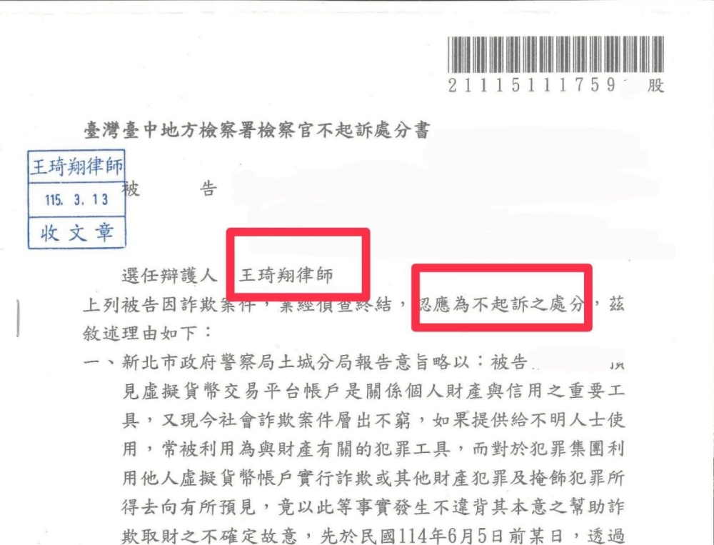 本件被告因長期有在從事捐款,故於網路上查詢到一舊衣捐款活動,因而聯繫上詐騙集團,惟因詐騙集團話術,告知被告可以投資更多錢,以作為慈善之款項,被告不疑有他,投入百萬餘元,以作公益之用,進而詐騙集團要求需提供帳戶,方可入帳捐款款項,藉以騙取被告之帳戶,且對話紀錄中均有被告與詐騙集團討論捐款一事之證明,足認被告自始均為本案之被害人,難認有主觀上之犯意,故檢察官迅為不起訴處分。
