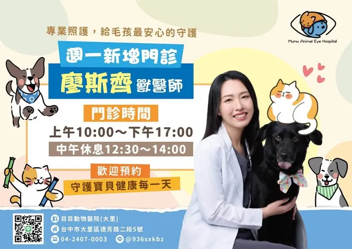 - 電話 : 04-24070003 地址 : 德芳路二段5號 信箱 : mumuanimaleyehospital@gmail.com
