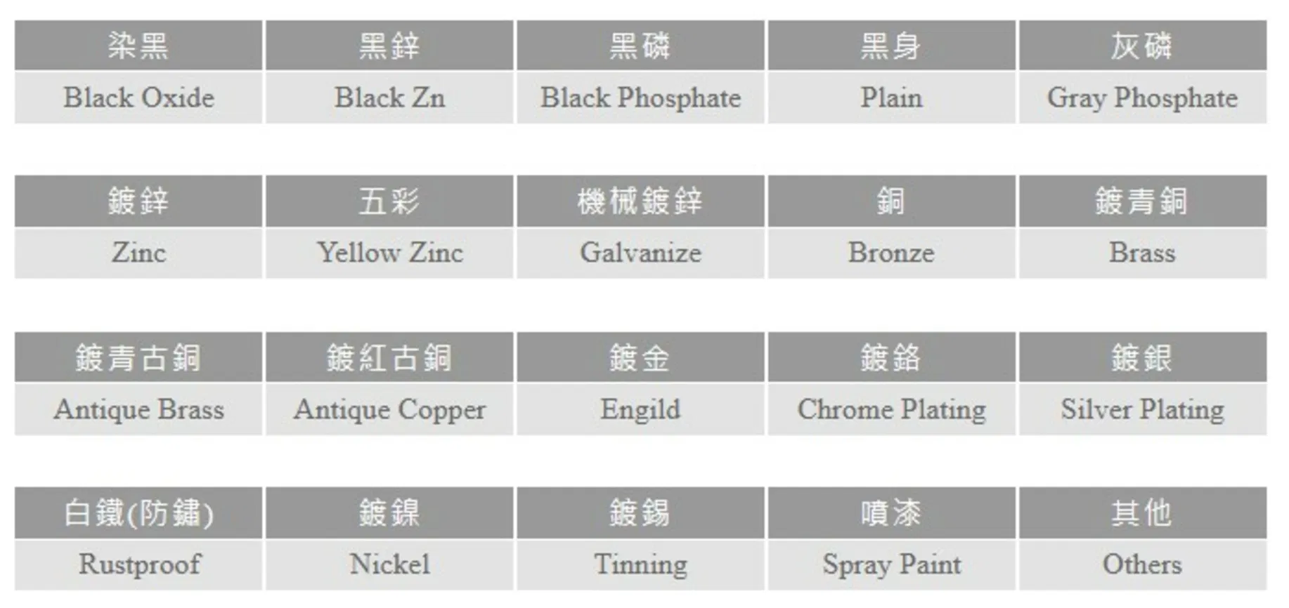 以上為常見電鍍種類,特殊處理可依客戶要求生產。