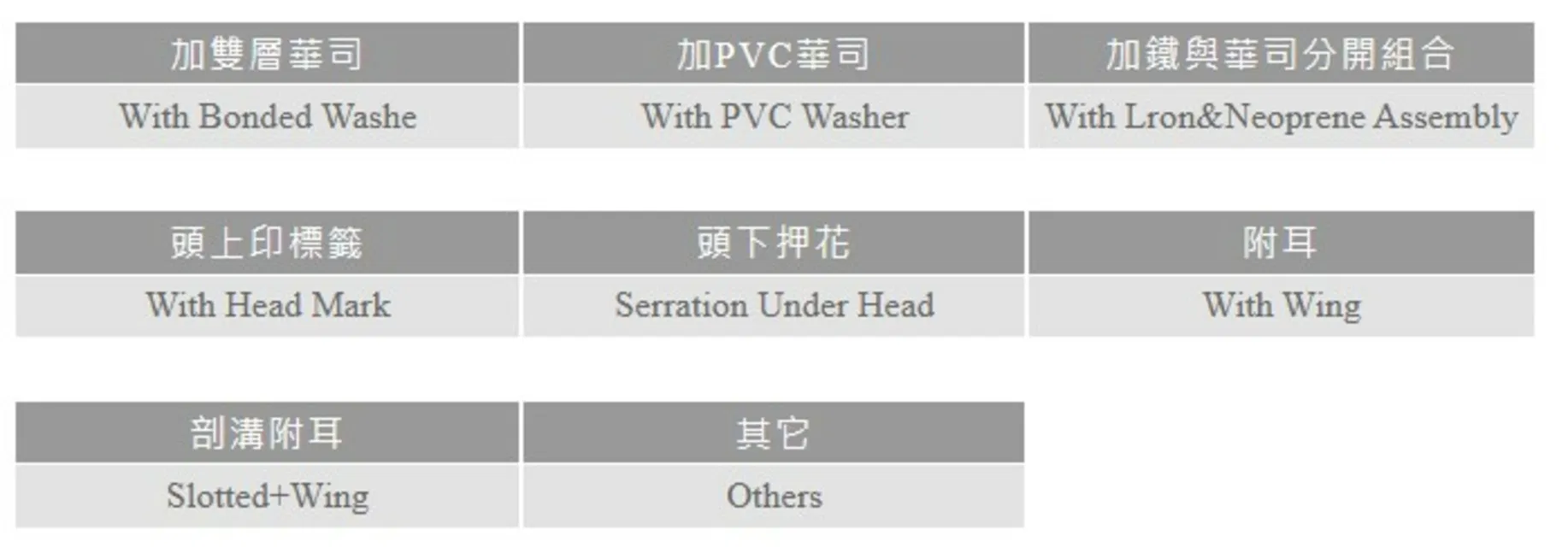 以上為常見附加種類,特殊條件可依客戶要求生產。