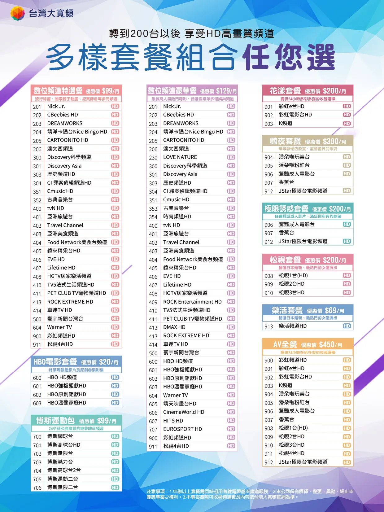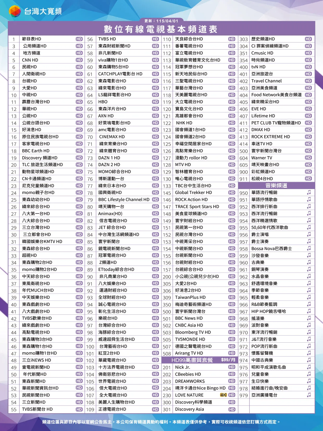 數位有線電視基本頻道表