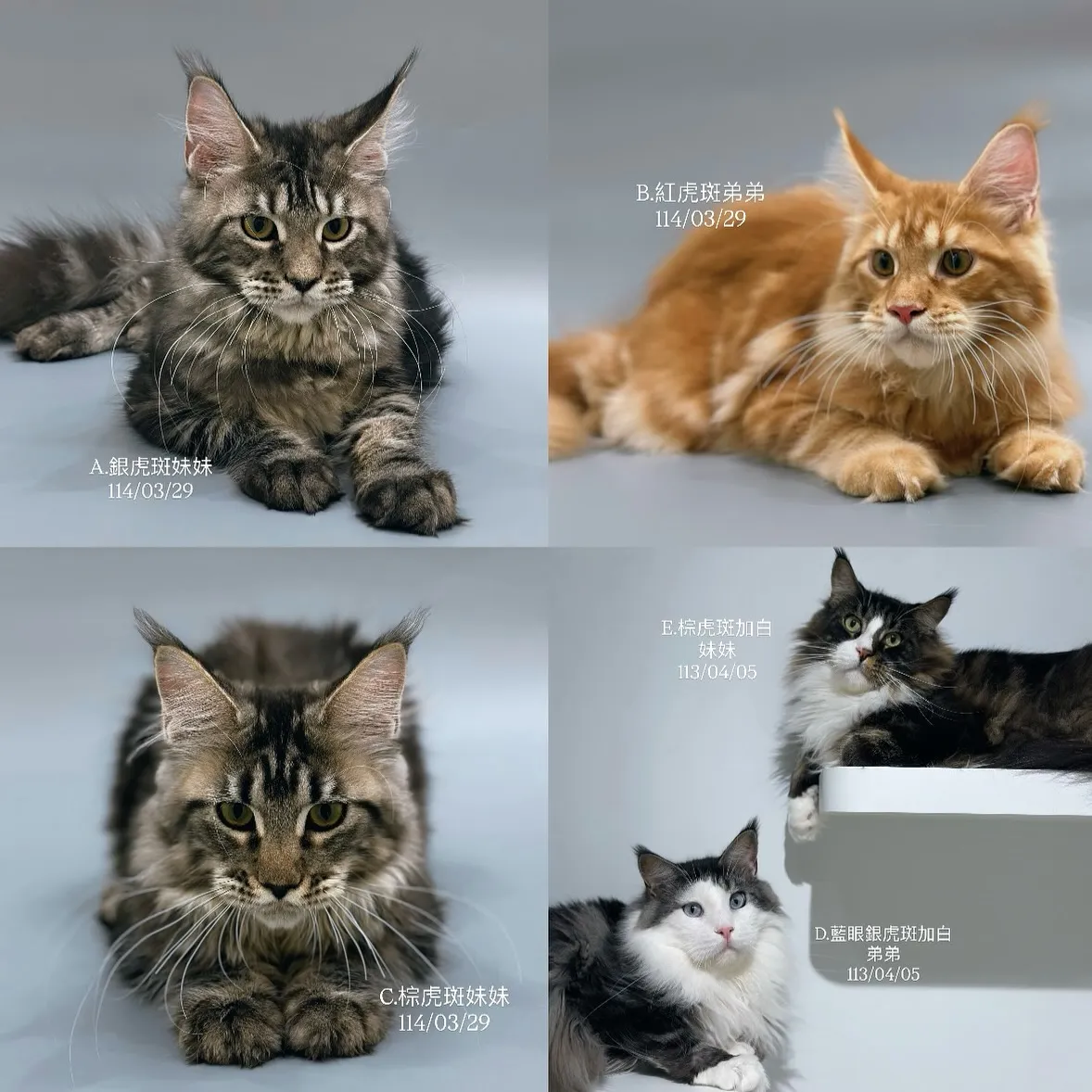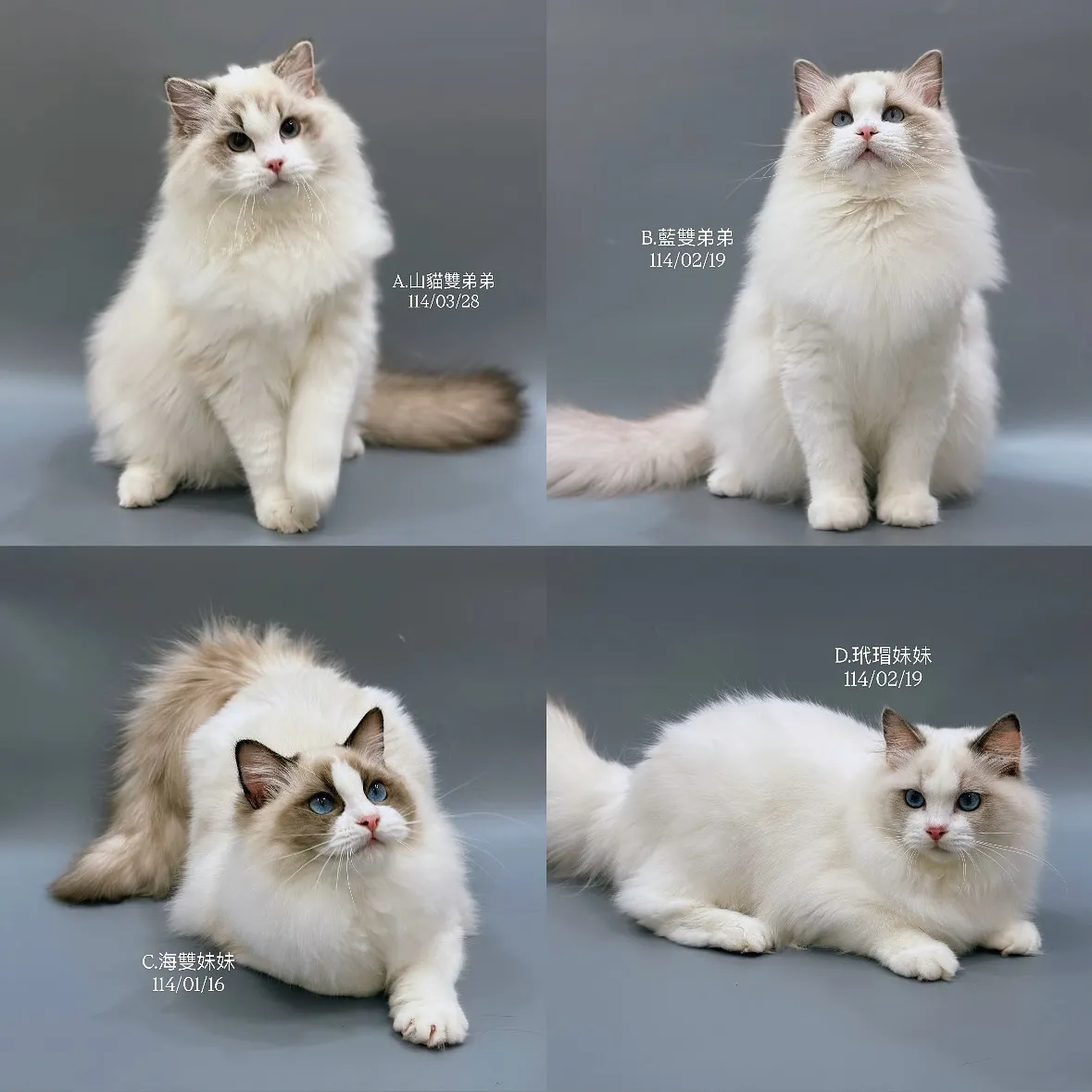 #布偶貓 #海豹雙色 #藍雙色 #藍玳瑁雙色 #山貓雙色 #緬因貓 #銀虎斑 #紅虎斑 #英國長毛 #小步舞曲 #曼赤肯 #德文卷毛貓 #挪威森林貓