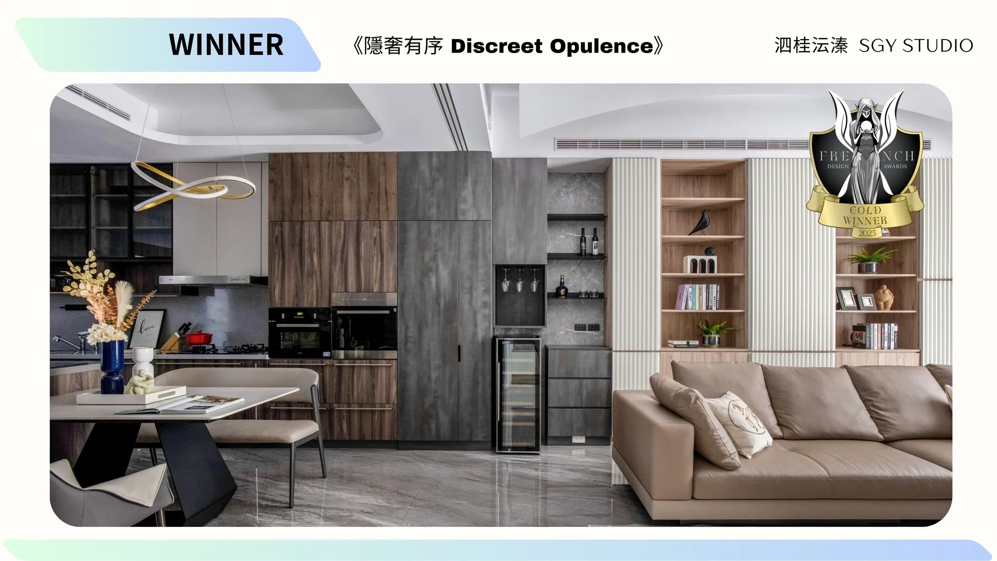 《隱奢有序 Discreet Opulence》為工程師夫妻與孩子構築,以「同處一室,卻能各自安放」為題。設計以秩序來構築空間型態和視覺表現,將繁複需求重組為清晰結構,讓家的形態隨孩子成長而持續演進。