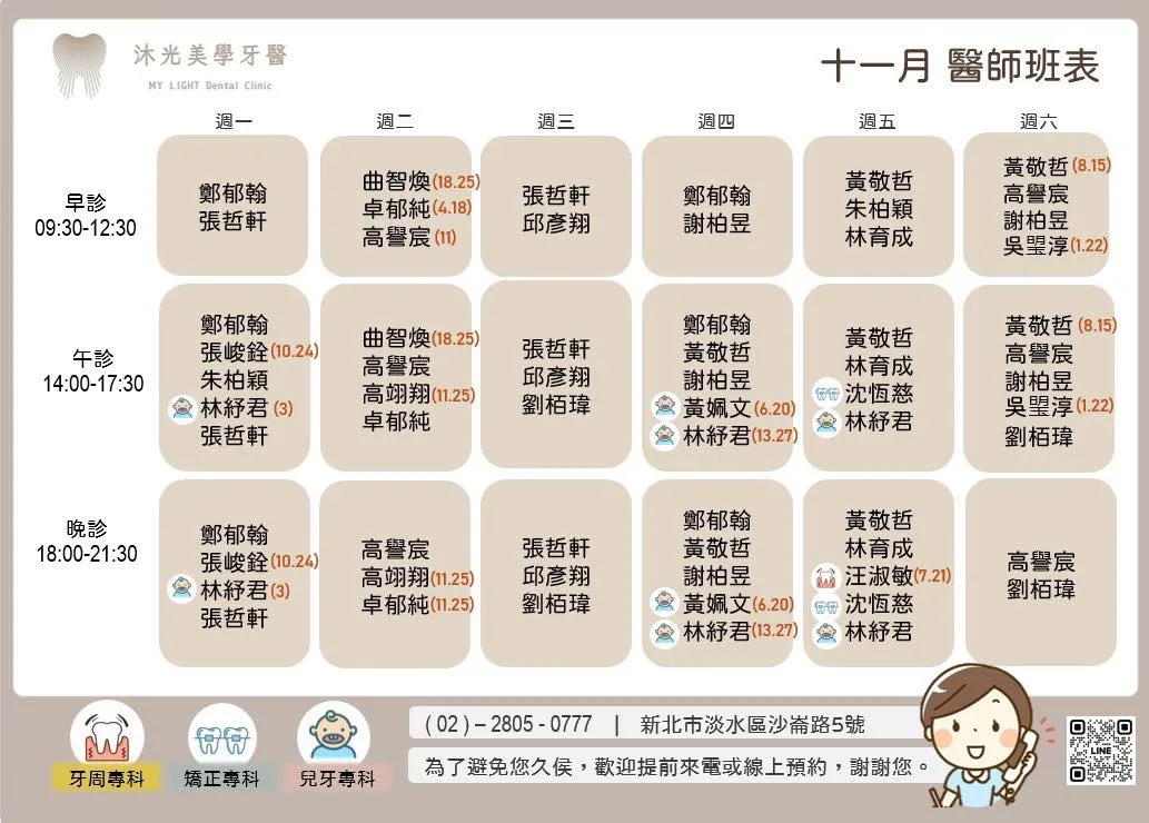 十一月的醫師班表出爐啦~台北舒眠植牙/台北微創植牙
